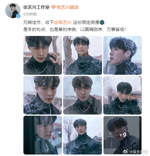 张艺兴18宫格元宵营业照 就是这么宠这么浪漫!好帅,雪景与帅哥很配,氛围感拉满了,这不是偶像剧男主是什么?!祝艺兴元宵节快乐呀!2026以圆满启序,万事皆成!