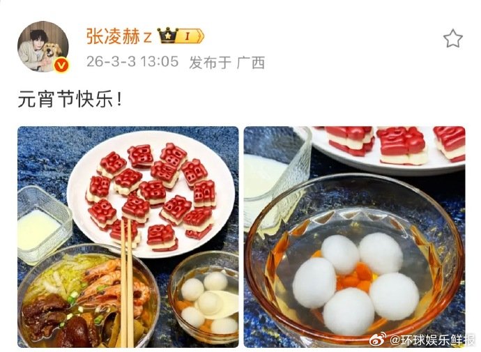 张凌赫的元宵午餐被哥晒的海鲜面狠狠馋到!还默默好奇他爱吃啥馅元宵~张凌赫拍的元宵