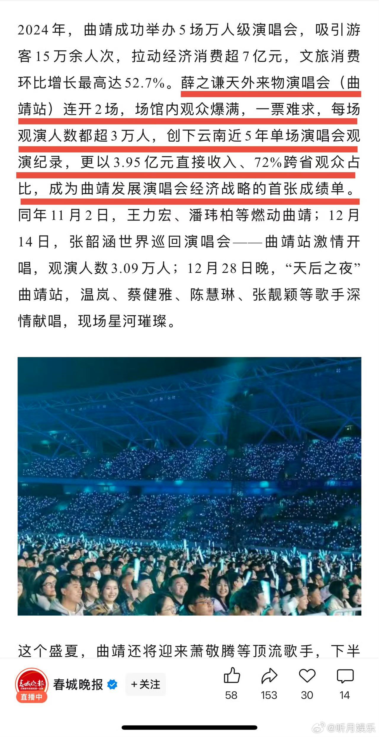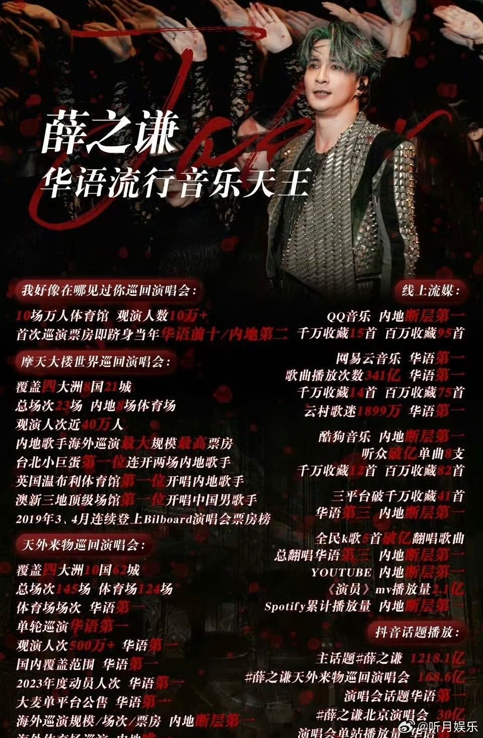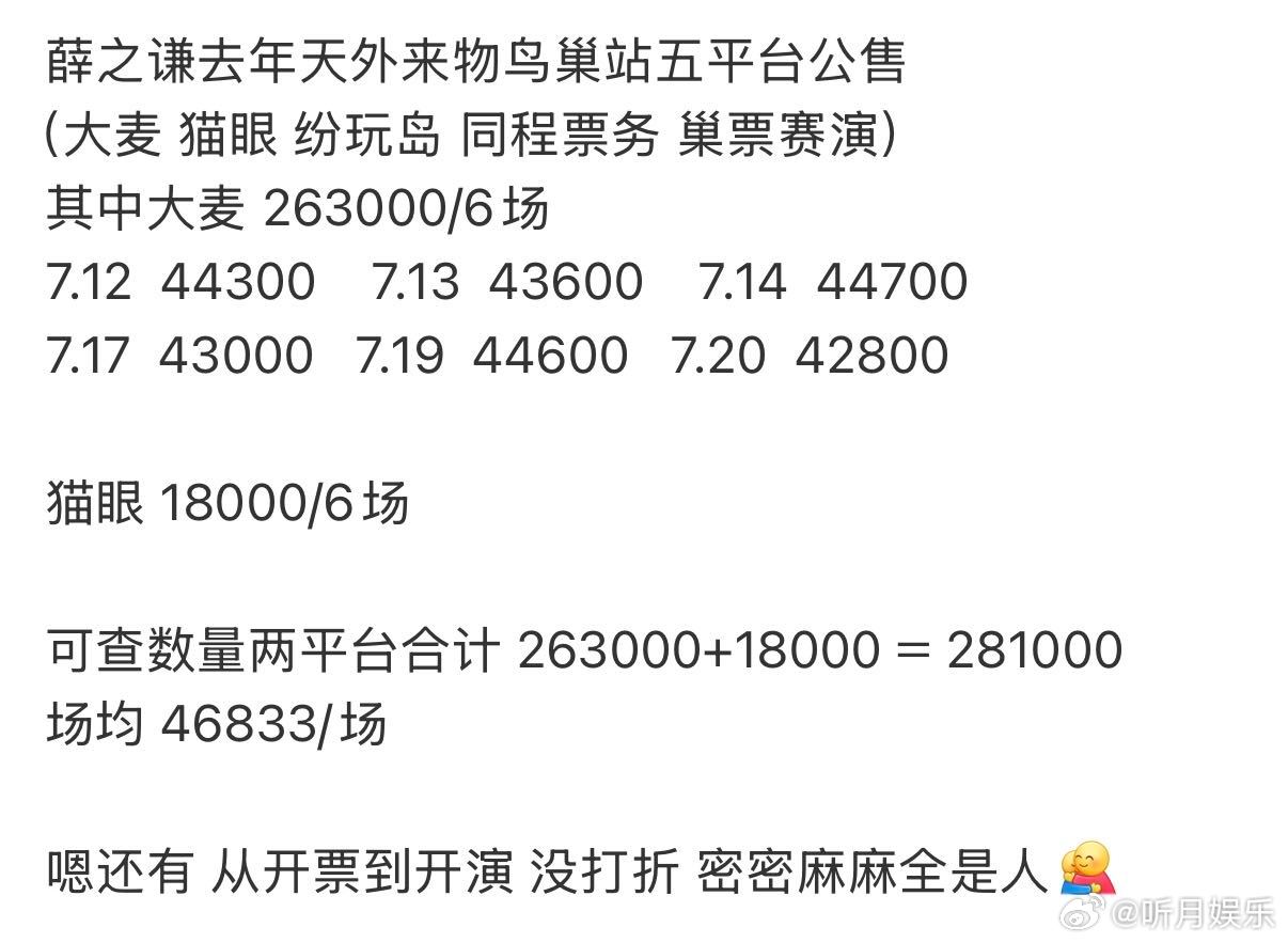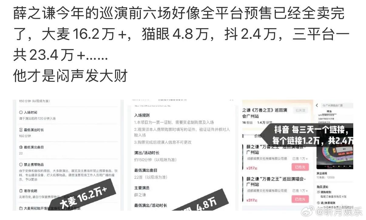 薛之谦演唱会票房 没想到薛之谦票房号召力这么厉害,这个水平可以说是华语乐坛第一了吧!上座率这么高巡演场次也很多,真的是闷声发大财爱听爱看,新的一年继续多多开演唱会吧~