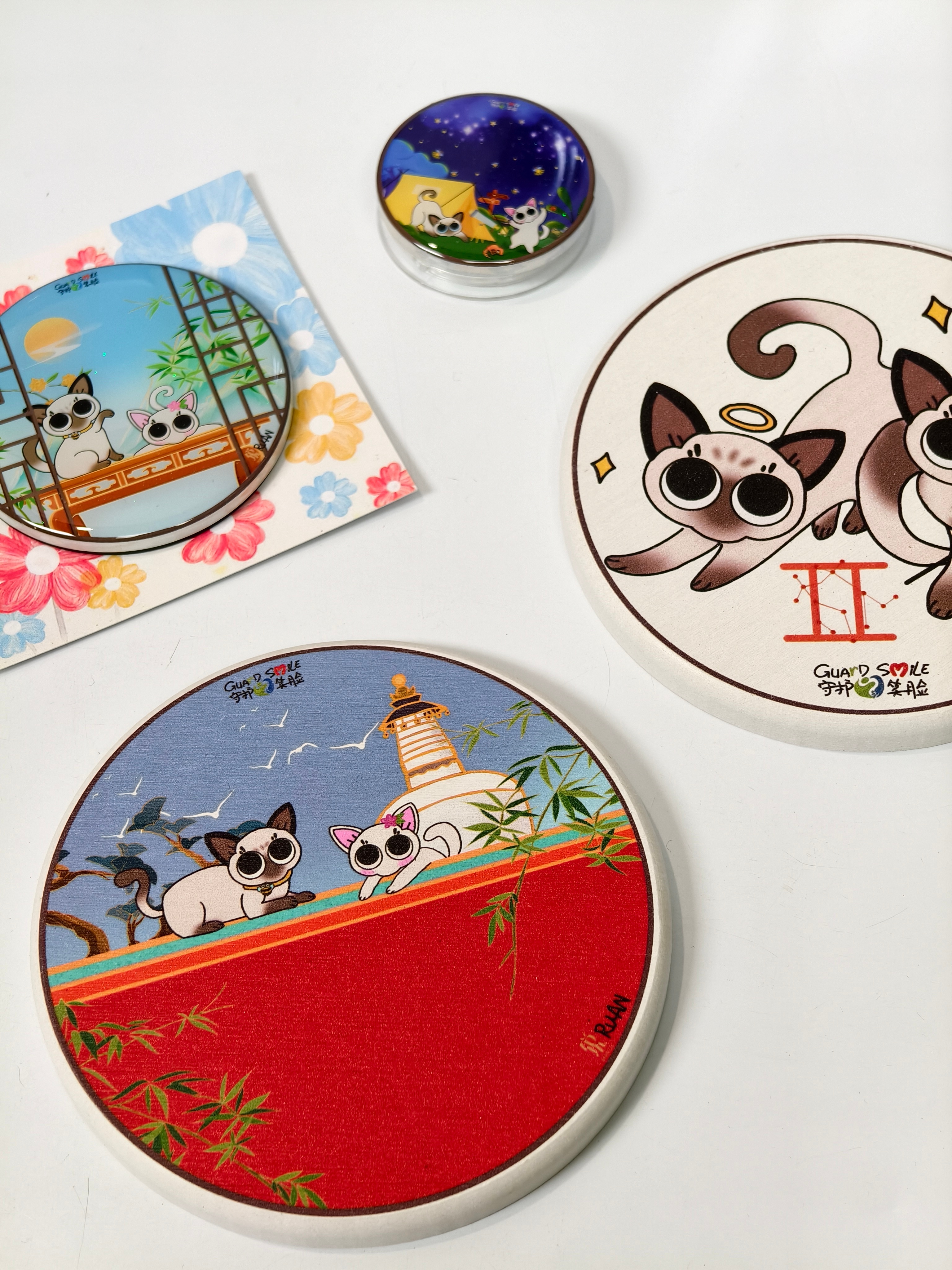 今日的第一份欢喜,来自可爱的小猫Momo✨包挂、杯垫、手机支架、冰箱贴,四件套集齐!把萌趣藏进日常角落,让每一次随手触碰,都是温柔的小确幸。手机支架解放双手,杯垫承包了所有杯具的颜值,包挂可爱又吸睛,冰箱贴点缀厨房,实用又治愈~元宵节