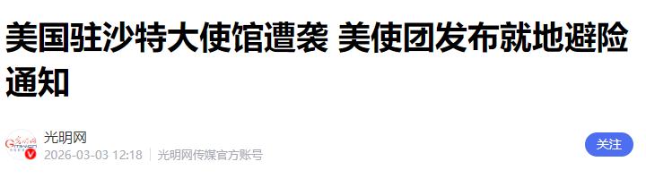 美军死伤快速增加,损失及后果远超预期,美国想认怂,这会轮到伊朗不答应! 根据新华社消息,沙特阿拉伯国防部3日通报了一个重要情报,经过初步评估,美国驻沙特大使馆遭到了两架无人机袭击,袭击引发了局部火灾,使馆建筑也受到了轻微损坏。 这背后的信号很明确:现在美国在中东地区的所有军事目标,都已经不再安全了,就连美国在中东的各类资产,也开始变得岌岌可危。 其实,这已经不是美国近期第一次在中东遭遇袭击了。就在驻沙特大使馆被袭击的前一天,美国驻科威特大使馆也遭到了伊朗无人机的袭击,同样造成了设施受损。 连续两座美国使馆遭到袭击,这在以前是很少见的,也能看出来,美国在中东的处境已经越来越危险。 袭击发生后,美国驻沙特大使馆赶紧发布了安全警示,对利雅得、吉达和达兰这三个地方发布了“就地避难”通知,还限制非必要人员前往当地任何军事设施,甚至建议所有在沙特的美国公民,立刻就地避险,可见美国现在有多慌张。 更让美国头疼的是,现在找它麻烦的不只是伊朗一家,伊朗的盟友已经全面参战,美国遭遇的损失,再也不仅仅是伊朗直接袭击造成的了。 一开始,美国可能以为伊朗只是孤军奋战,只要加大打击力度,就能很快逼伊朗妥协,但它低估了伊朗的实力,更低估了伊朗盟友的决心。 伊朗主导的中东抗以联盟,也就是大家常说的“抵抗之弧”,大部分成员都已经投入了战斗。其中,伊拉克的什叶派民兵组织“伊斯兰抵抗组织”最为活跃,自3月2日凌晨以来,已经用数十枚导弹和无人机,对伊拉克及其周边地区的美方单位发动了28次袭击,还曾袭击过巴格达机场内的美军目标。 这些民兵组织有丰富的实战经验,之前在对抗极端组织时就表现突出,现在针对美军的袭击,精准度和力度都很足,让美军防不胜防。 除了伊拉克的民兵组织,黎巴嫩真主党也加入了战斗。之前以色列曾袭击过黎巴嫩真主党,还联合美国对伊朗发动打击,打死了伊朗最高领袖哈梅内伊,这彻底激怒了黎巴嫩真主党。 随后,黎巴嫩真主党就用高精度火箭弹和无人机,打击了以色列海法地区以南的一处以军导弹防御基地,直接回应美国和以色列的侵略。虽然以色列也在全力反击,但黎巴嫩真主党的抵抗从未停止,大大牵制了美国和以色列的力量。 还有巴勒斯坦的哈马斯,虽然自2023年巴以冲突以来,哈马斯的军事基础设施遭到了严重破坏,大规模作战能力受到限制,没能直接投入大规模战斗,但它也发表声明,强烈谴责美国和以色列联合打击伊朗的行为,称这是对整个中东地区的侵略,明确站在了伊朗这边。 另外,也门胡塞武装也在一旁支援,和伊拉克的民兵组织联合,针对美国和以色列的目标发动袭击,进一步加大了美国的损失。 现在美军的损失已经到了难以承受的地步。3月2日,美军三架F-15E战机在科威特上空坠毁,后来经过多方证实,竟是被盟友科威特的防空火力误击的。这款战机是美军在中东的主力机型,先进又昂贵,三架战机同时坠毁,对美军来说是不小的损失。 除此之外,科威特境内的美国阿里夫坚军营、阿联酋的美军指挥控制中心、巴林的美国海军基地,都遭到了伊朗的导弹和无人机打击,其中巴林的美国海军第五舰队总部被重创,一半主体建筑被炸毁,科威特境内的一处美军基地更是被彻底摧毁,基础设施全部报废。 人员伤亡方面,截至3月2日下午,已有6名美军士兵确认阵亡,58人受伤,后续还有可能增加。而且美国在中东的多个补给点也遭到袭击,物资损失不计其数。 更让美国压力巨大的是,国内的反对声音越来越大,只有25%的民众支持对伊朗发动空袭,70%的选民表示反对,特朗普的支持率也跌到了36%,国会内部的分歧也越来越大。 面对这样的局面,美国彻底扛不住了,开始有了认怂的想法。之前就有消息称,美国正在从叙利亚全面撤军,计划在两个月内撤出所有驻叙美军,这其实就是美国收缩中东力量、想减少损失的信号。毕竟再这样耗下去,美军的损失只会越来越大,美国的国力也会被不断消耗,最终得不偿失。 但美国想认怂,伊朗可不会答应。大家都知道,这场冲突的起因,是美国和以色列率先对伊朗发动袭击,造成了伊朗数百名平民伤亡,还有大量民用设施被炸毁,伊朗的最高领袖也被打死,这样的深仇大恨,伊朗不可能就这么算了。 而且现在伊朗已经不是孤军奋战,有这么多盟友支持,底气也越来越足,伊朗的伊斯兰革命卫队还在持续发动“真实承诺-4”行动,不断对美军在中东的目标发动打击,就是要让美国付出应有的代价。