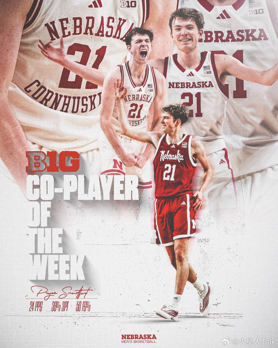 Big Ten联盟第17周表现奖(2025-2026赛季)。NCAA男篮最佳球员:Pryce Sandfort、Nick Martinelli,最佳新生:Hannes Steinbach。NCAA女篮最佳球员:Olivia Olson,最佳新生:Maya Makalusky。