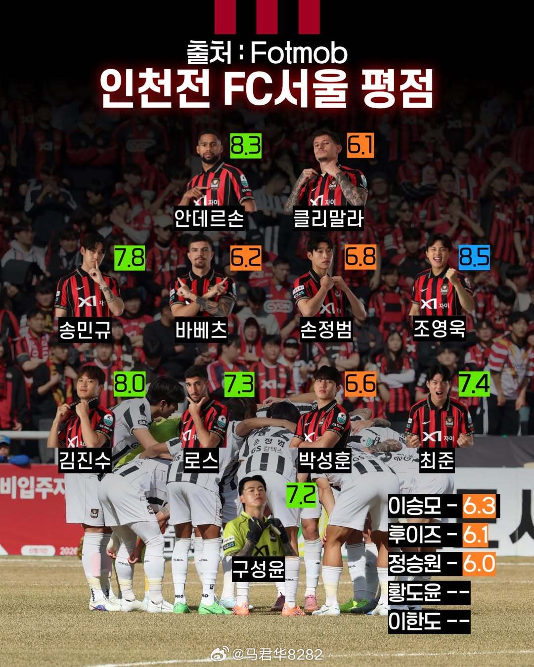 天津津门虎旧将罗斯的K联赛亮相战,评分7.3。四名首发的外援中,罗斯评分排名第二