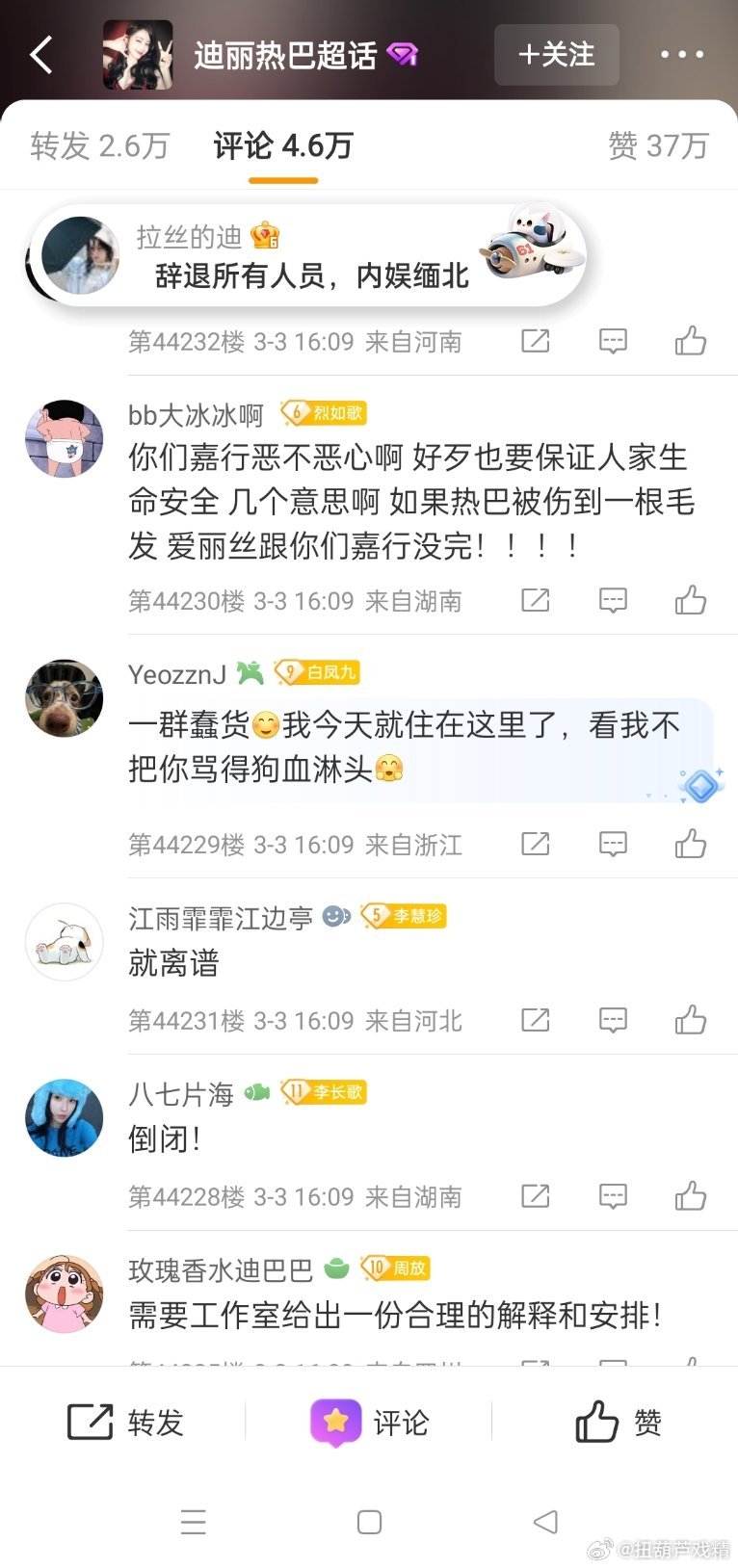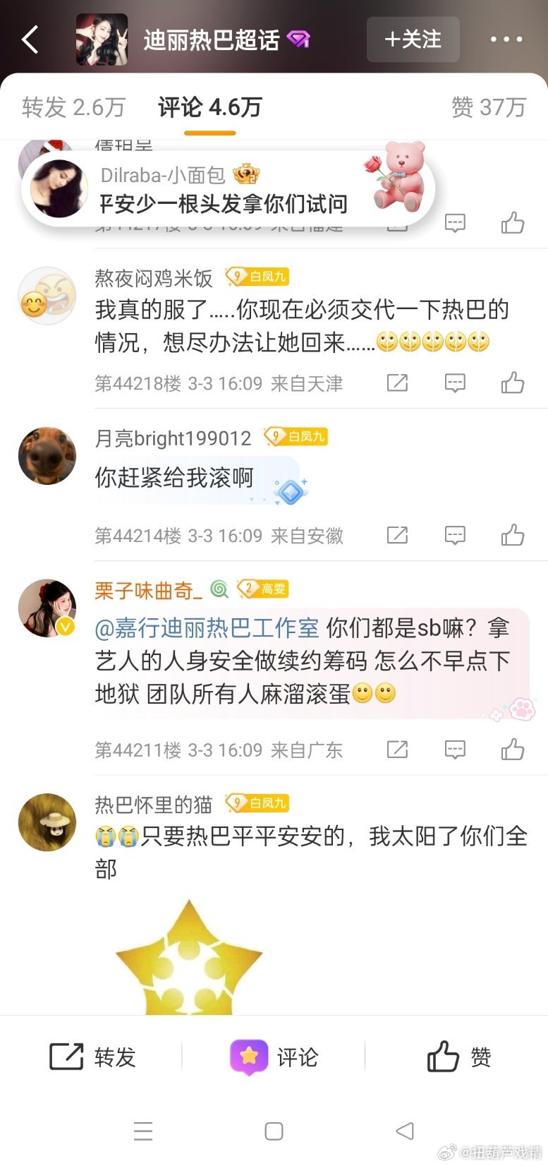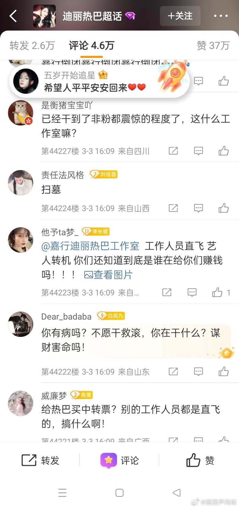 迪丽热巴将缺席时装周无法抵达巴黎,工作室评论区全是粉丝骂声,质疑团队的能力,巴不是三岁小孩,她不同意有人拿枪逼着他上飞机?粉丝的意思她是提线木偶是巨婴?迪丽热巴 滞留迪拜