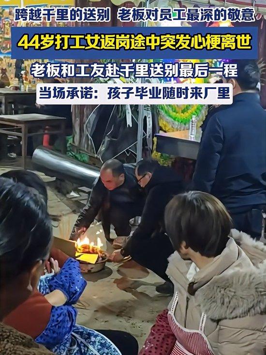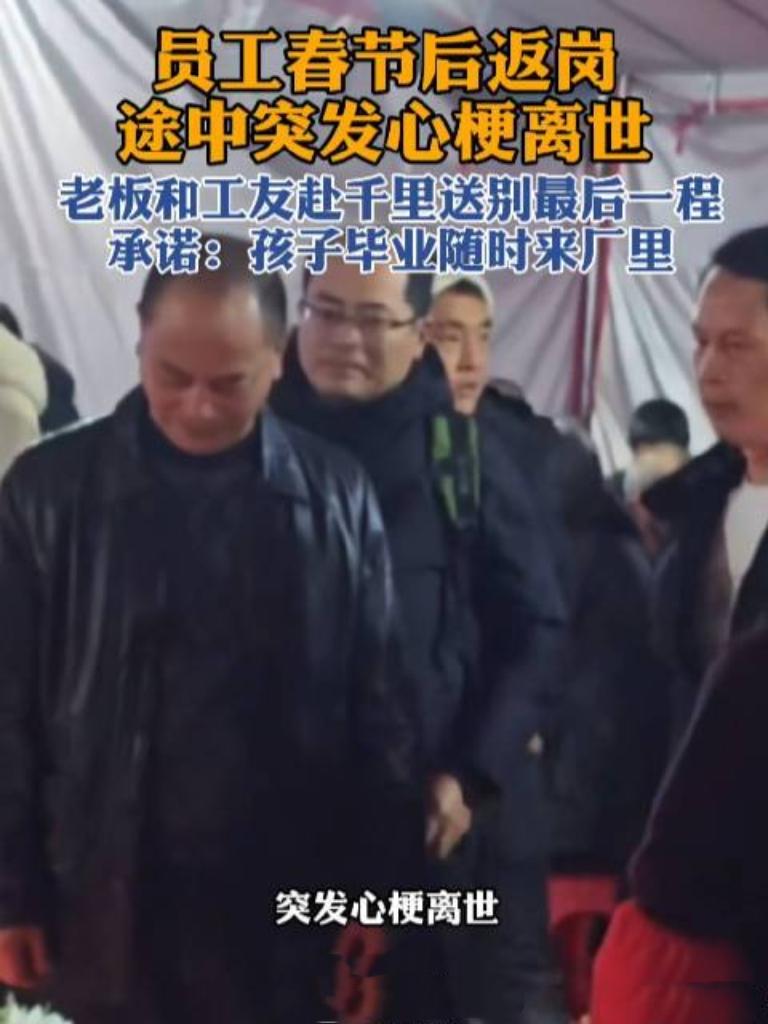 44岁打工女练女士返岗途中突发心梗离世,广东老板携工友跨越千里赴贵州送别,不仅留下3万抚恤金,更承诺供养其子女就业。这份超越雇佣的情义令全网动容,你身边有这样有温度的职场故事吗?欢迎分享!女生心梗