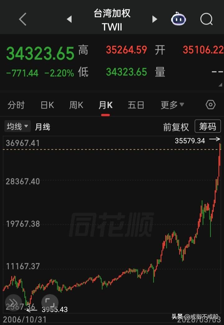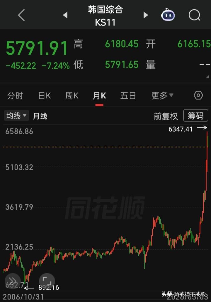 上证真牛,只跌59点,跌1.43% 恒生指数,下跌291点,跌1.12% 台湾加权,下跌771点,跌2.20% 印度孟买,下跌1079点,跌1.33% 日经指数,下跌1778点,跌3.06% 韩国综指,下跌452点,跌7.24% A股上涨643家,下跌4807家,涨停85家,跌停82家,下跌超10%的77家,下跌超7-10%的537家,下跌超5-7%的889家,下跌超3-5%的1556家