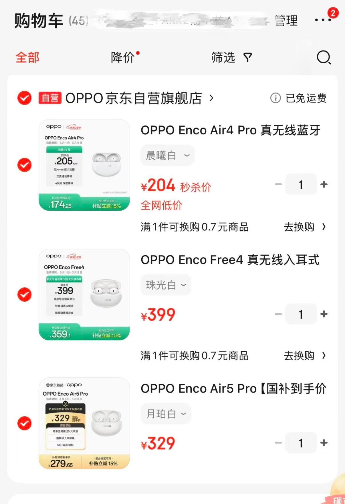 换个耳机也忒难了🎧OPPO这三款咋选? 耳机丢了一个月了😭一直拖着没买,今天终于下定决心做功课 预算300左右,看了一圈就看中了OPPO这三款 不过OPPO Enco Air5 Pro、Air4 Pro、Free4这三款给我整懵了,不知道该选谁🤔 研究了一晚上,终于理清楚了 感觉很多人都跟我一样迷糊,分享一下我的笔记📝 👇直接上干货对比: 🎧OPPO Enco Air5 Pro(💰到手价279) 目前Air系列新款,降噪效果很猛 支持55dB旗舰降噪 + 54h续航 还用上12mm动圈,音质也不错 性价比很高,学生党日常用闭眼冲 🎧OPPO Enco Air4 Pro(💰到手价174) 性价比小钢炮,支持49dB降噪 + 44h续航 + 12.4mm动圈 有Hi-Res金标,音质也不错~ 🎧OPPO Enco Free4(💰到手价399) 属于中高端旗舰,支持丹拿调音+双单元,音质拉满 降噪、音质、综合体验更好,预算稍足想一步到位选它 💡先说定位 Free系列其实是比Air系列要高一档的 但从产品迭代来看,数字越新配置越顶 至于怎么选: 👉 追求极致性价比、预算紧张 →OPPO Enco Air4 Pro(不到200能拿下49dB降噪... 👉 宿舍党、对降噪要求高 →OPPO Enco Air5 Pro(55dB基本能把舍友打游戏的声音隔绝掉) 👉 经常多设备切换、需要稳定连接 →OPPO Enco Free4(双设备无缝切换确实方便) 我准备冲OPPO Enco Air5 Pro了,毕竟最新款,多花几十块买个体验升级也值✨ 你们用的哪款?给个建议呗~ 蓝牙耳机OPPO Enco Air5 Pro