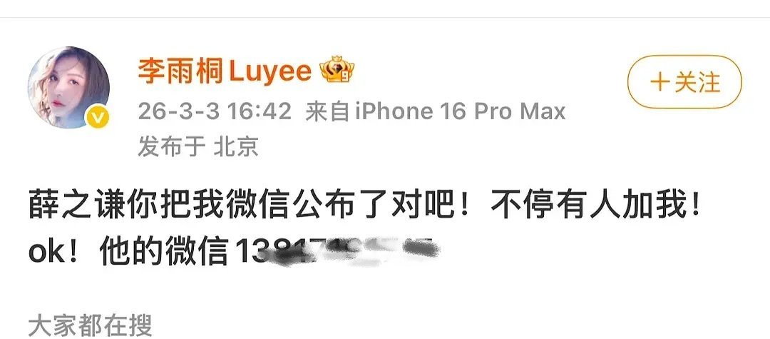 李雨桐曝光了薛之谦的vx,然后网友神奇的脑回路来了,手机号真的能查到小红薯,所以李思瑾是对的,一个瓜硬锤另一个瓜啊李雨桐 薛之谦来告我