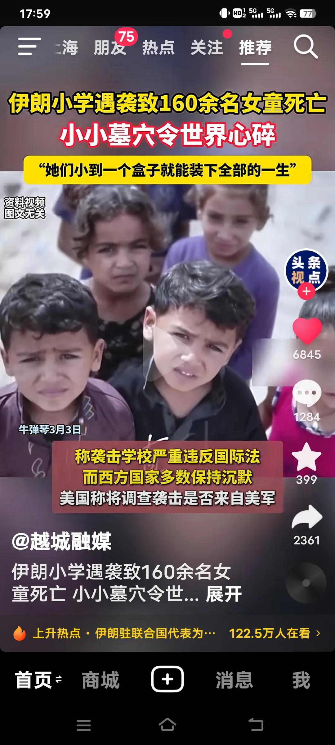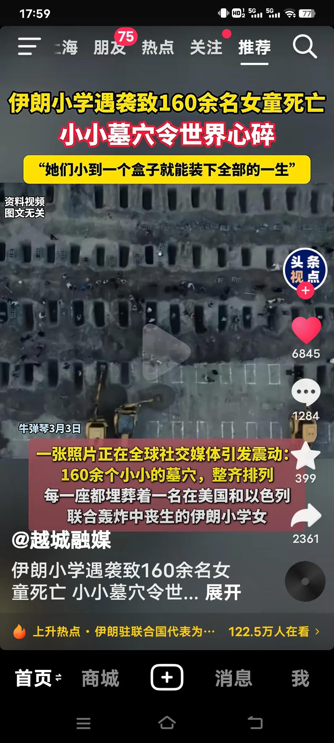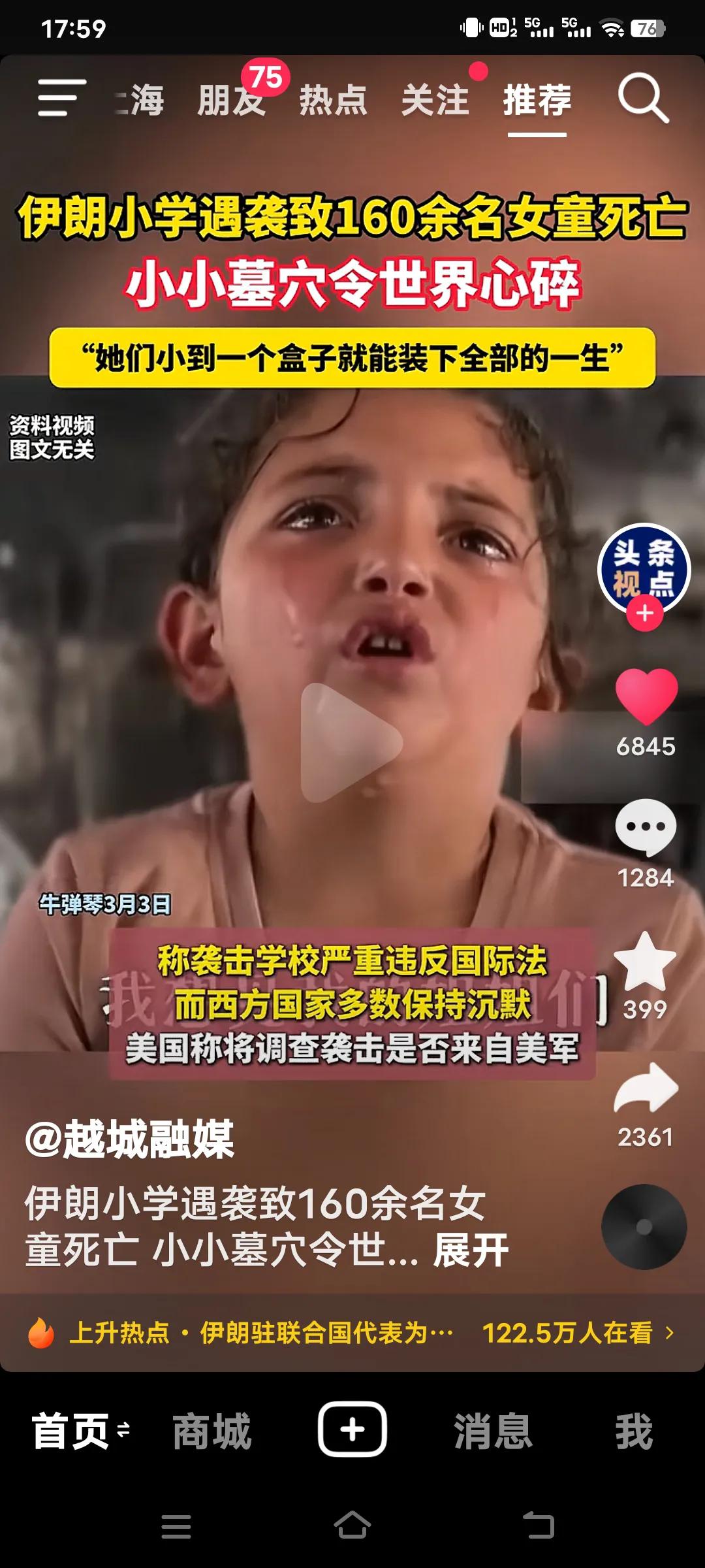 看到伊朗小学女童遇袭惨死,那小小的墓穴着实令人心碎不已。160余名鲜活生命消逝,这背后是一个个家庭的破碎,是无数人的悲痛。在本应充满欢笑与希望的年纪,她却遭遇了这般残酷的命运。 战争与暴力宛如无情恶魔,肆意地吞噬着无辜生命。伊朗长期面临诸多不稳定因素,无辜民众深受其害。这个女童只是众多受害者的一个缩影,还有更多人在苦难中苦苦挣扎。 真心希望世界能多一些和平,少一些纷争,让孩子们都能在安全的环境中茁壮成长,不再有如此令人痛心的悲剧上演。 我们中国人都支持伊朗反抗,可现实是伊朗或许难以取胜,这着实让人寒心。 小学生何错之有?为何要对她们下此毒手?难道这些孩子就白白牺牲了吗?谁能站出来阻止这一切?美国称要调查是否是美军所为,那就彻查清楚,总得给个交代吧! 伊朗命运反思 伊朗女童遇袭 伊朗击中