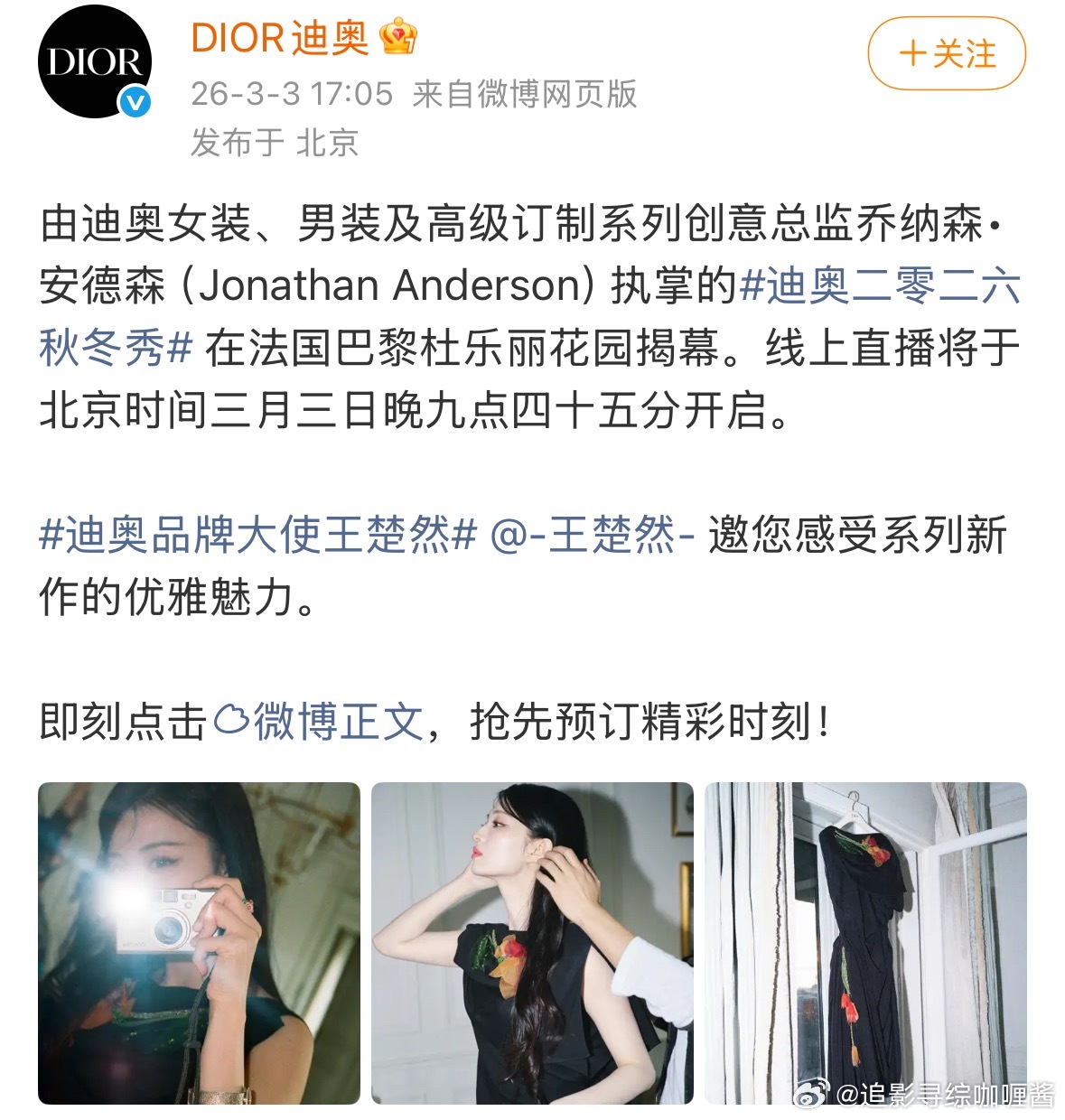 迪奥官宣王楚然为品牌大使!!!还放出了看秀造型恭喜美船!!!!🎉🎉