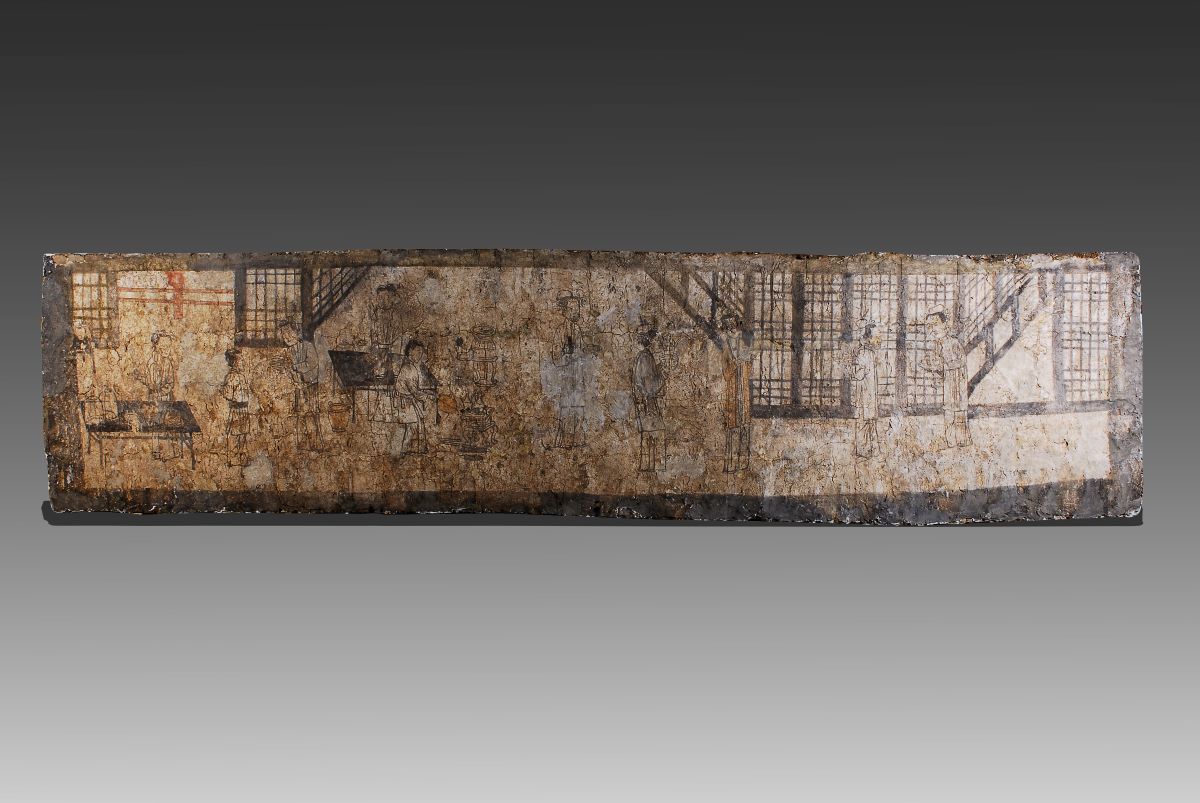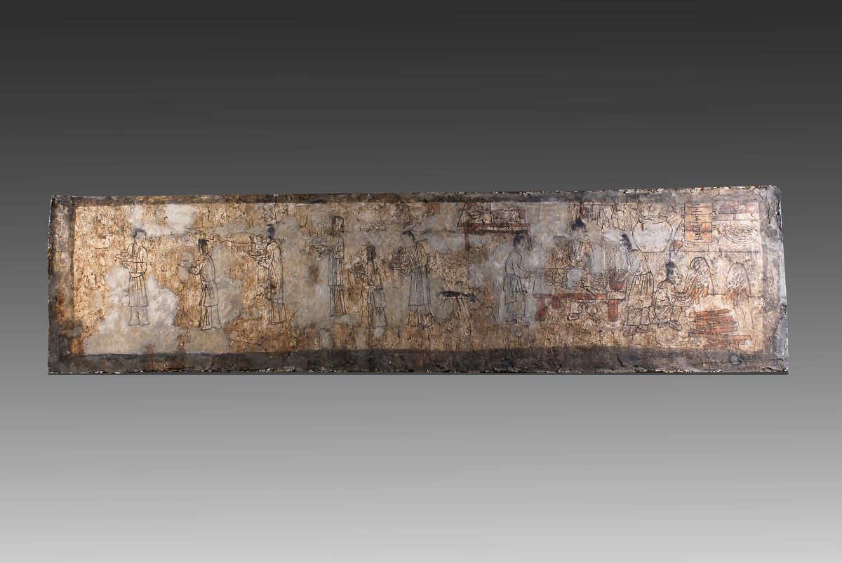 湖北襄阳博物馆藏2007年襄城檀溪路南宋砖墓出土的 南宋:彩绘壁画备宴图、庖厨图