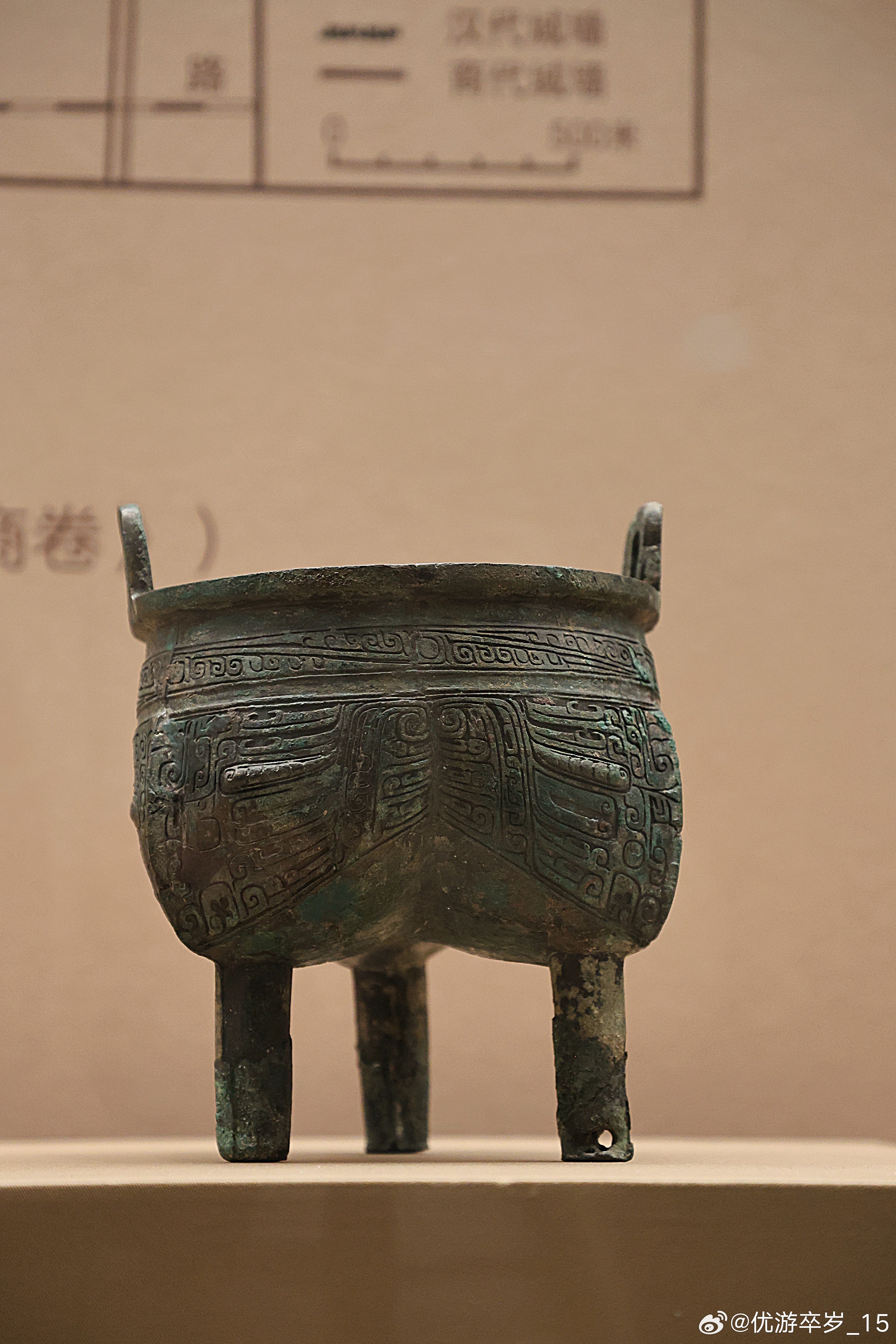我的2026 【中国之中-中原古代文明精粹】 铜鼎商(公元前1600-前1046年)河南省文物考古研究院藏荥阳小胡村贵族墓地出土。铜鼎器体厚重沉稳,口微敛,方唇宽沿,腹部鼓起呈袋状分档,沿上立双耳略向外侈,下承三柱足,造型庄重而富有张力。器身满饰纹饰,以云雷纹为地,主体为兽面纹,廓线清晰,纹饰繁缛而层次分明,铸造精良,展现出商代青铜器较高的范铸工艺与装饰水平。清华大学艺术博物馆展出2026.2.8约会博物馆 文物
