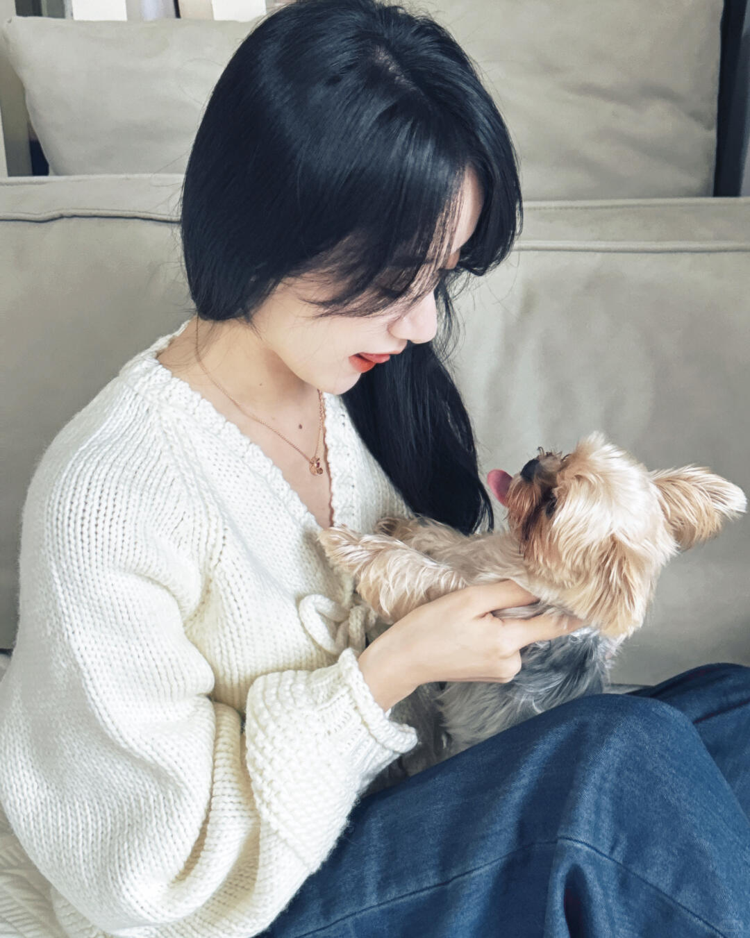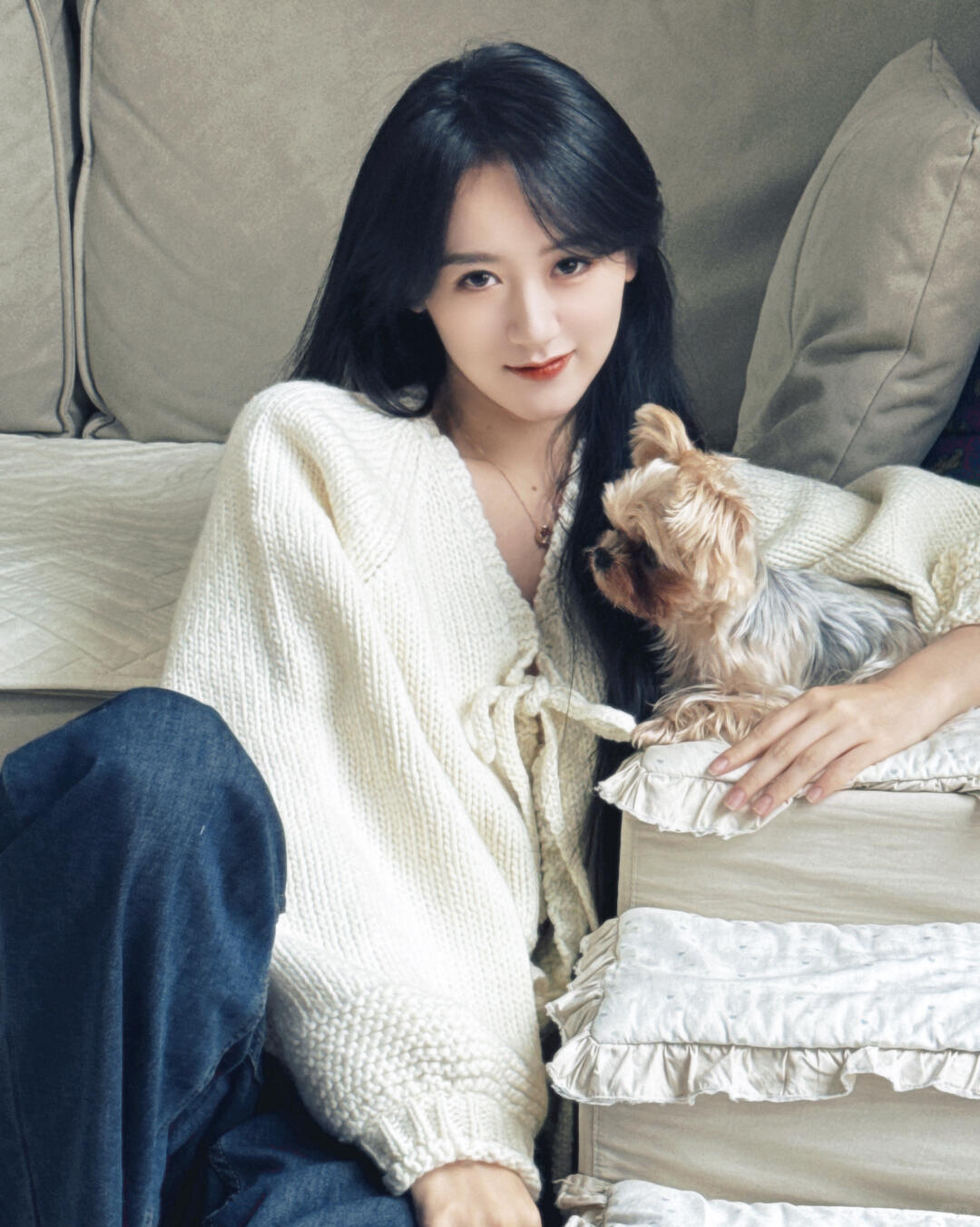 刘亦菲这条裤子挺养生,毕竟降温了肚脐眼必须护住啊