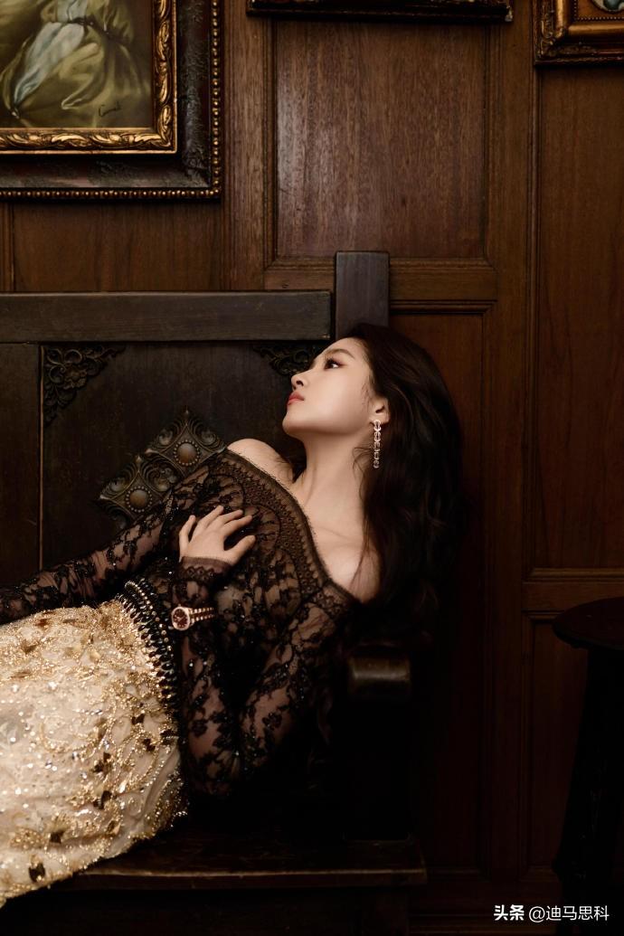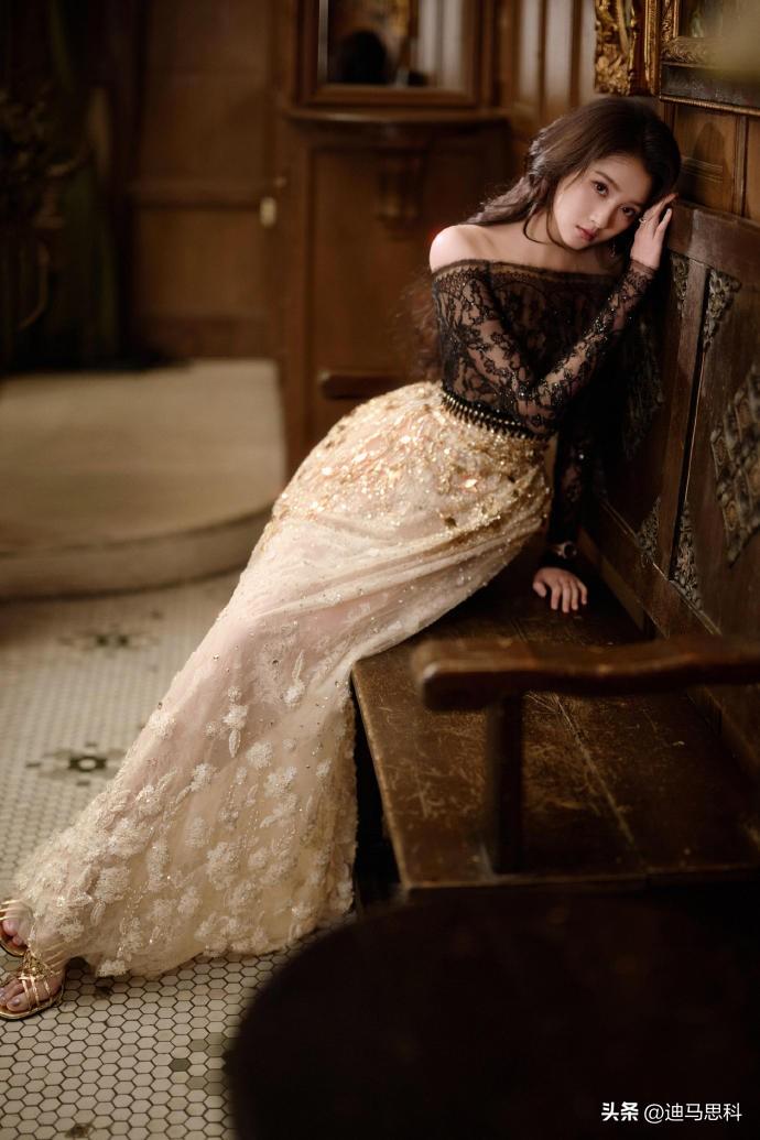 关晓彤这身金色复古礼裙,华丽格调直接拉满。上半身是黑色蕾丝长袖,精致花纹搭配露肩设计。下半身的金色刺绣长裙更是亮点,上面的亮片和花纹在光下闪闪发光,与黑色蕾丝形成鲜明又好看的对比。不同材质和颜色的拼接太妙了,蕾丝的细腻碰上刺绣的华丽,整体造型看点十足。这穿搭在正式场合穿,高级优雅感轻松拿捏,关晓彤穿着它大气迷人。 关晓彤礼裙造型