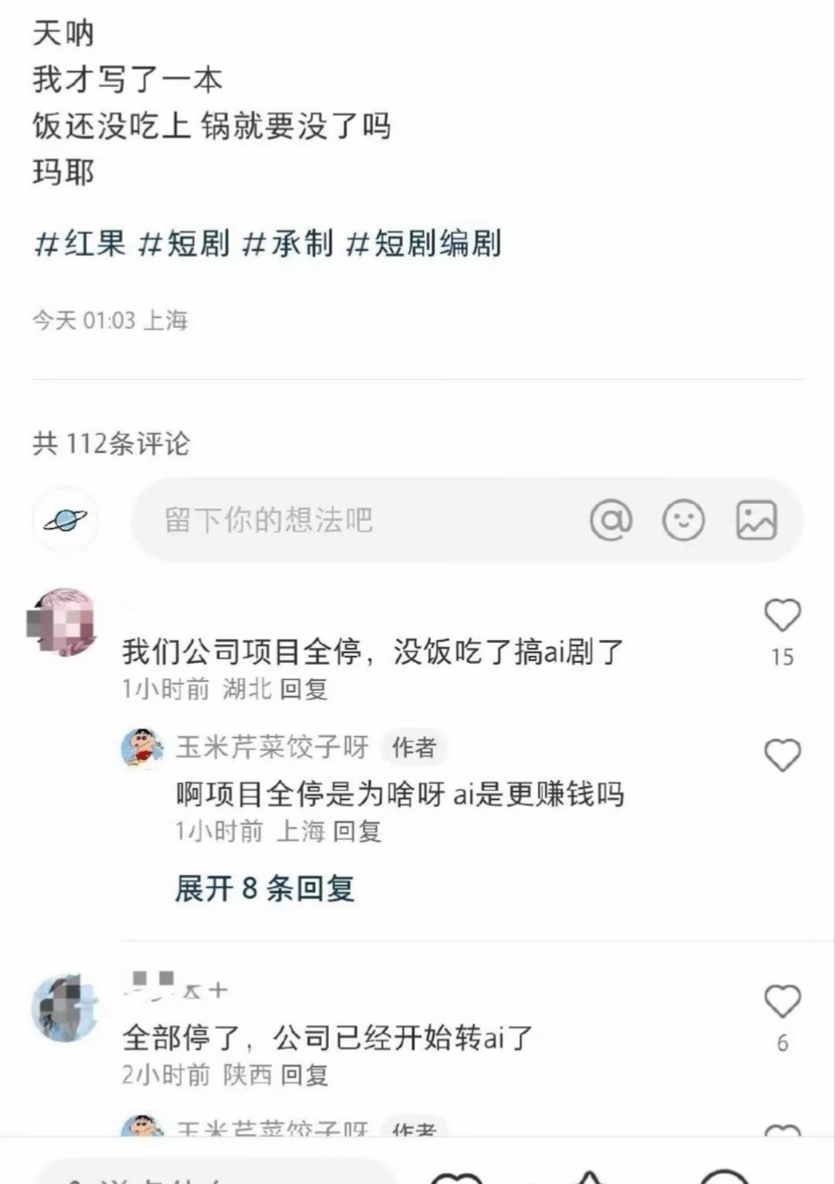 AI短剧 恐怖谷效应天呐,AI短剧也太诡异了吧…当红果停掉真人短剧,全行业一窝蜂转向AI短剧时,将会产生恐怖谷效应。那些精致到失真的虚拟面孔,眼神里没有温度,动作里藏着机械感,明明无限接近真人,却在细微处暴露出非人的违和。观众被这种“似人非人”的诡异感反复刺痛。当创作被成本绑架,当故事沦为AI生成的流水线产品,我们失去的不只是演员的灵气,更是影视艺术最珍贵的“人味”。春节刷到宝了