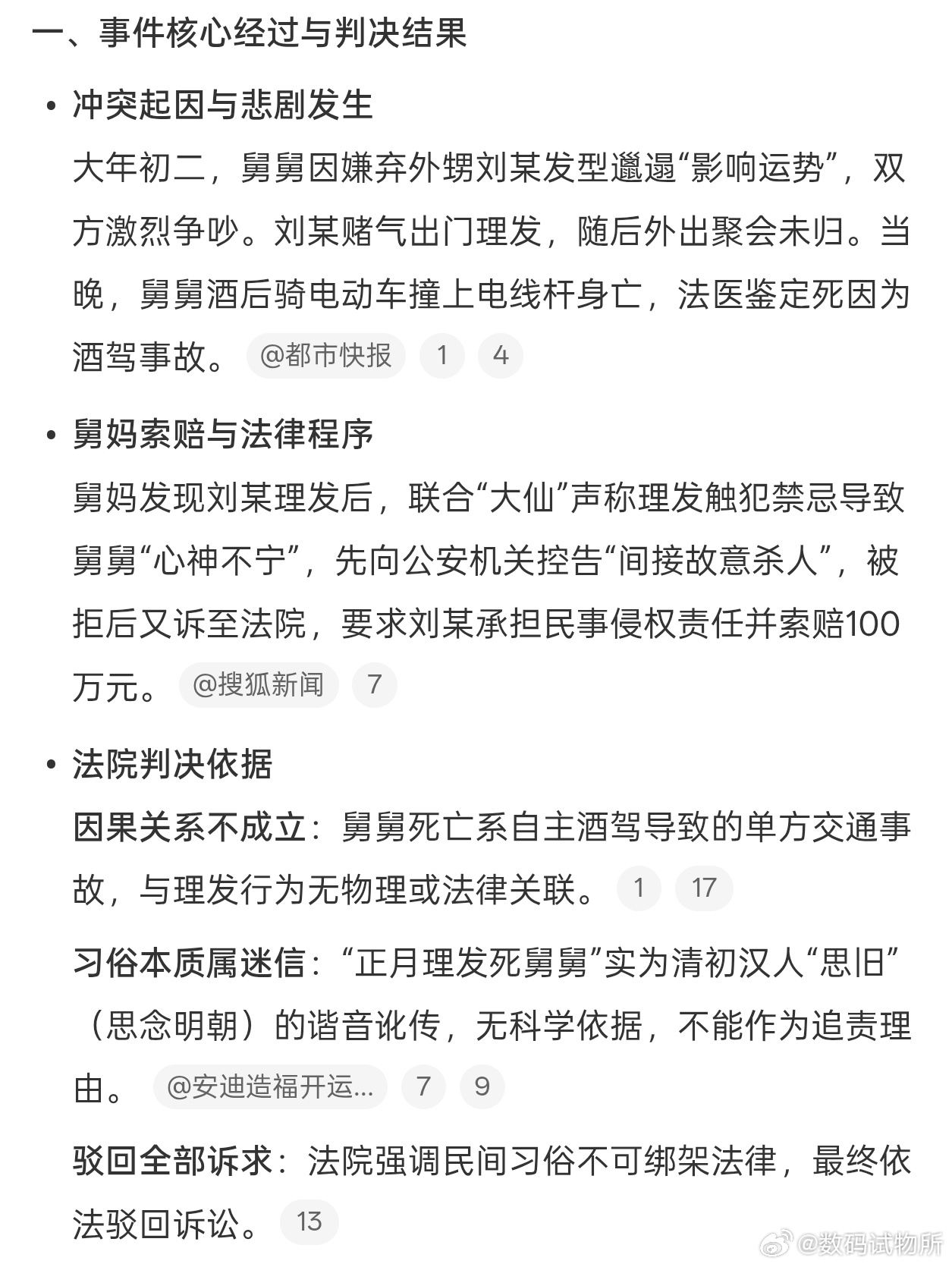 舅舅去世舅妈向正月理发外甥索赔百万……无聊,没新闻发可以不发,什么新闻才会写某年