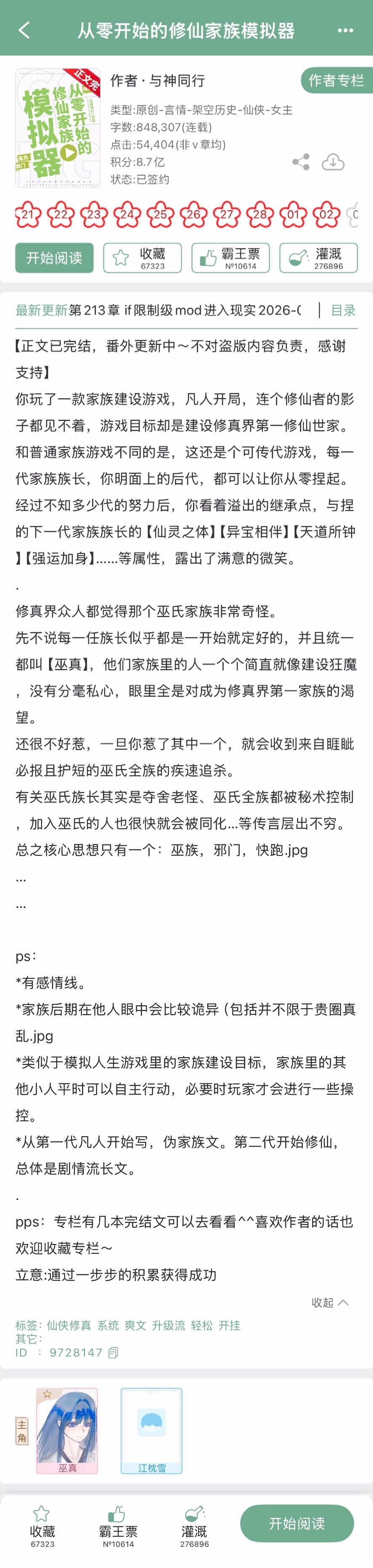 与神同行的《从零开始的修仙家族模拟器》完结啦!修真文,剧情流长文