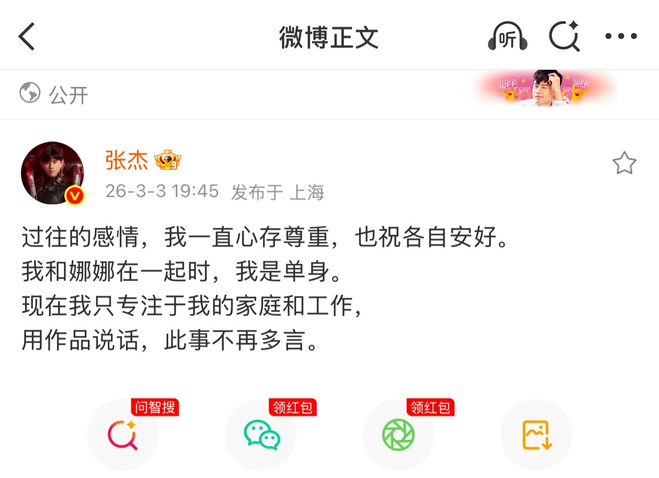 张杰回应前女友长文 张杰 我和娜娜在一起时我是单身