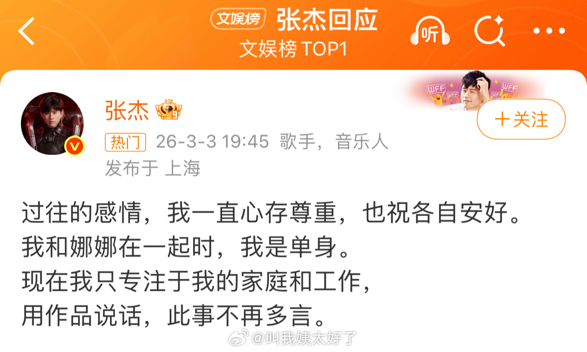 张杰的回应是对前女友的吧?“过往的感情”、“和谢娜在一起时是单身”张杰回应