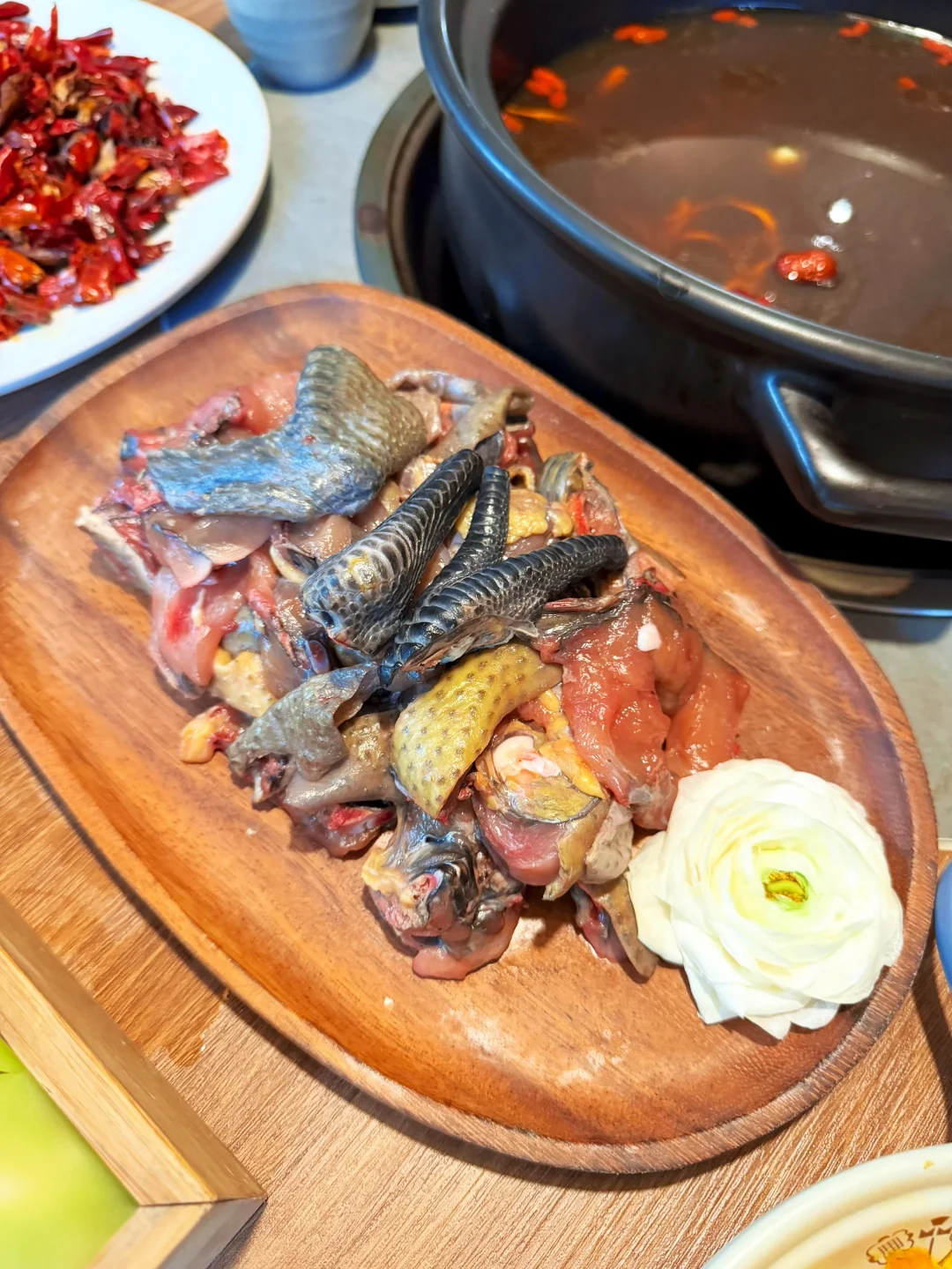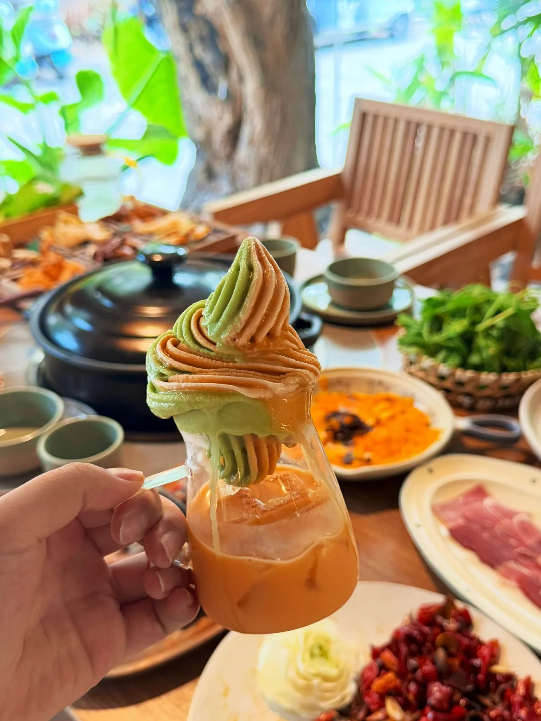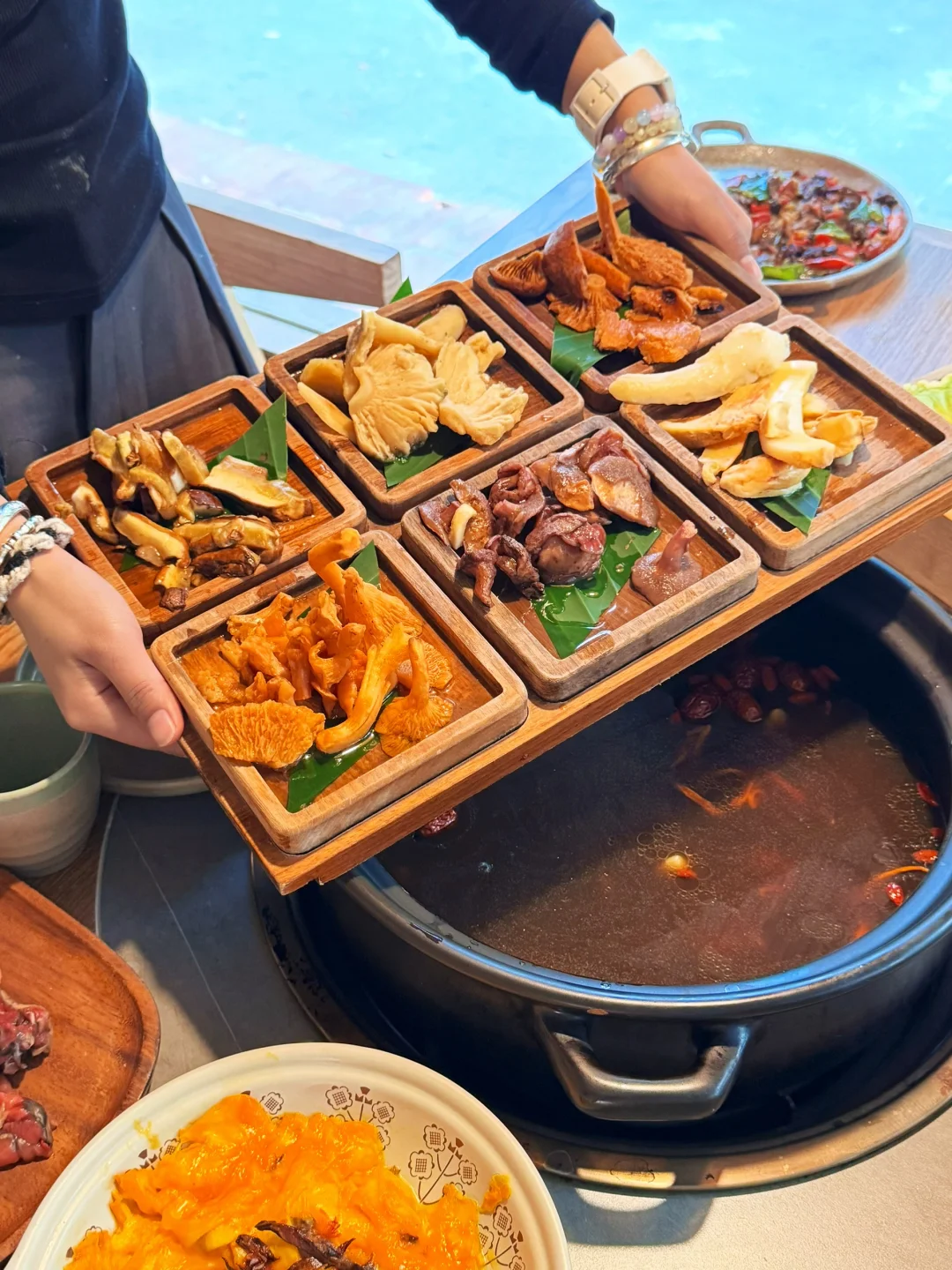 坐在小木屋里吃火锅,放佛置身在老挝🌴 想起在老挝露天吃火锅 ,也是植被很多 又很有设计感,庭院里还有个超大的椰子树 树边还有躺椅简直氛围感拉满。。。 ✔️6种菌汤火锅 鸡枞,牛肝菌,竹荪……鲜到掉眉毛 ✔️慢熬土鸡➕宣威火腿汤底,一定要记得先喝汤 ✔️店员会帮忙煮菌子➕现场切见手青➕倒计时⌛️ ✔️老板放心大胆说他们的纯野生🍄不是无人🍄,假🍄1️⃣🉐🔟,放心大胆吃……