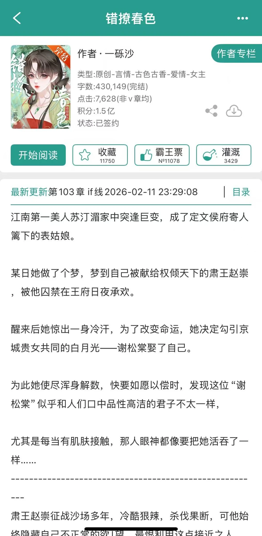 [爆炸R]钓系万人迷表姑娘 x 腹黑强势摄政王 [爆炸R]古言/宫廷侯爵/强取豪夺/女撩男/追妻/雄竞 [种草R]作者大大还蛮会写这种钓系万人迷,看似小白花,其实心机girl,很对味;男女主之间的情感拉扯也很带劲,女主一开始找错人,误打误撞开启了一段奇妙的感情。 [种草R]男主腹黑强势,有肌肤饥渴症,有了这个设定,两人的对手戏就更加充满拉扯感了,车速快快的。