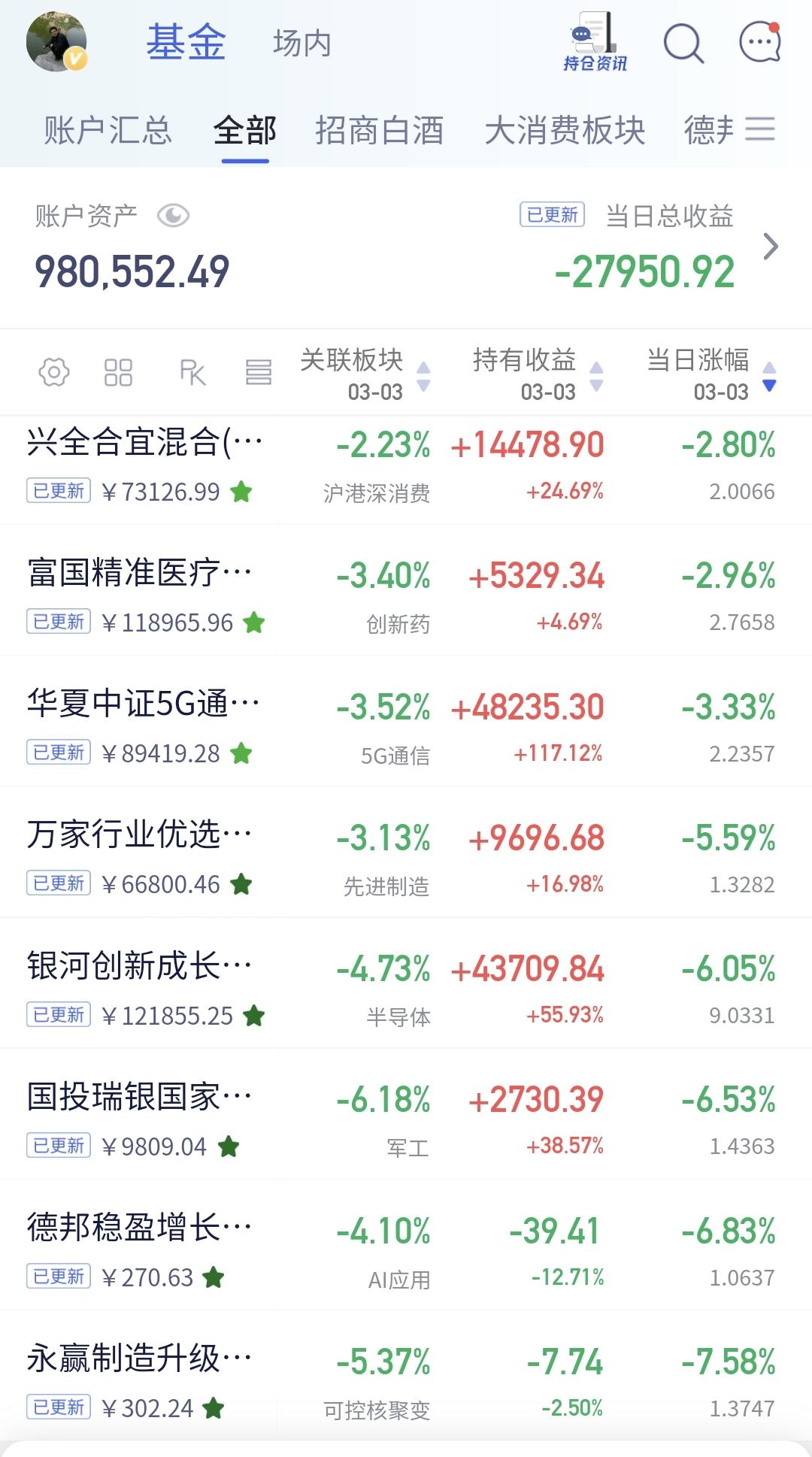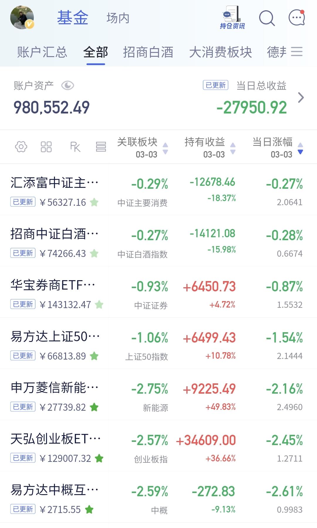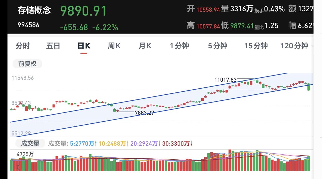 基金:明天反弹的过程当中需要观察什么 美股市场现在下跌,纳斯达克指数下跌了1.78%,标普指数下跌了1.95%,道琼斯指数下跌了2.12%,下跌幅度都比较大。 欧洲市场现在也是下跌中,英国下跌了3.09%,法国下跌了3.34%,德国下跌了3.74%,下跌幅度都在3%以上。 纳斯达克金龙中国指数跌幅扩大至4%,但愿收盘的时候下跌幅度能够缩小,不然的话,明天开盘又是低开。 存储概念板块处于上涨通道中,但今天的下跌跌破了日线级别上涨通道的下轨线,短线持有的人今天应该是要进行防守,今天是以大阴线跌破上涨通道下轨线的,这样的情况之下更需要进行防守? 存储概念板块周线级别处于上涨通道的上方,周线级别还是处于上涨趋势中,长线持有的人可以继续持有,持有这个板块的人不建议满仓,今天在日线级别上涨趋势破位的情况之下,最起码要做一个部分减仓的动作。 今天很多板块都破位了日线级别的上涨趋势,显示在指数上就是创业板指也颇为了日线级别的上涨趋势,这样的情况之下,进行部分减仓,一点毛病都没有。 风浪越大,鱼越贵,现在的调整下跌是为了将来更好的上涨,现在调整下跌的幅度越大,将来你捞回筹码的价格就越便宜,你能够获得的利润空间也就更大,珍惜这一次调整的机会,但愿这一次有一个充分的调整,但愿这一次能够让我们捞到便宜的筹码,这样我们到年底的时候才能够盆满钵满,这样我们到年底的时候才能够满嘴流油。 明天如果有反弹,反弹的时候观察有没有资金进场,没有资金进场的反弹都是耍流氓,还要观察反弹的力度能不能上涨到今天下跌幅度的一半位置附近,明天反弹的力度最越大,这一次调整的空间就会越小。 花1秒钟点赞,花30秒钟评论,就是对我最大的支持,谢谢大家的支持。