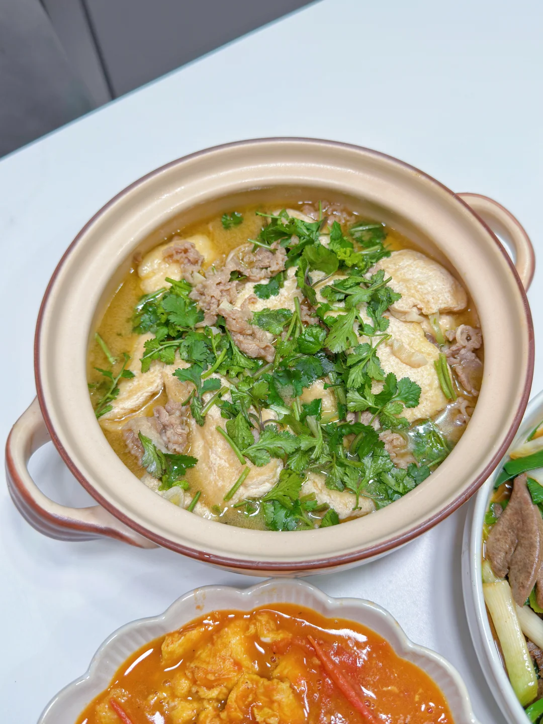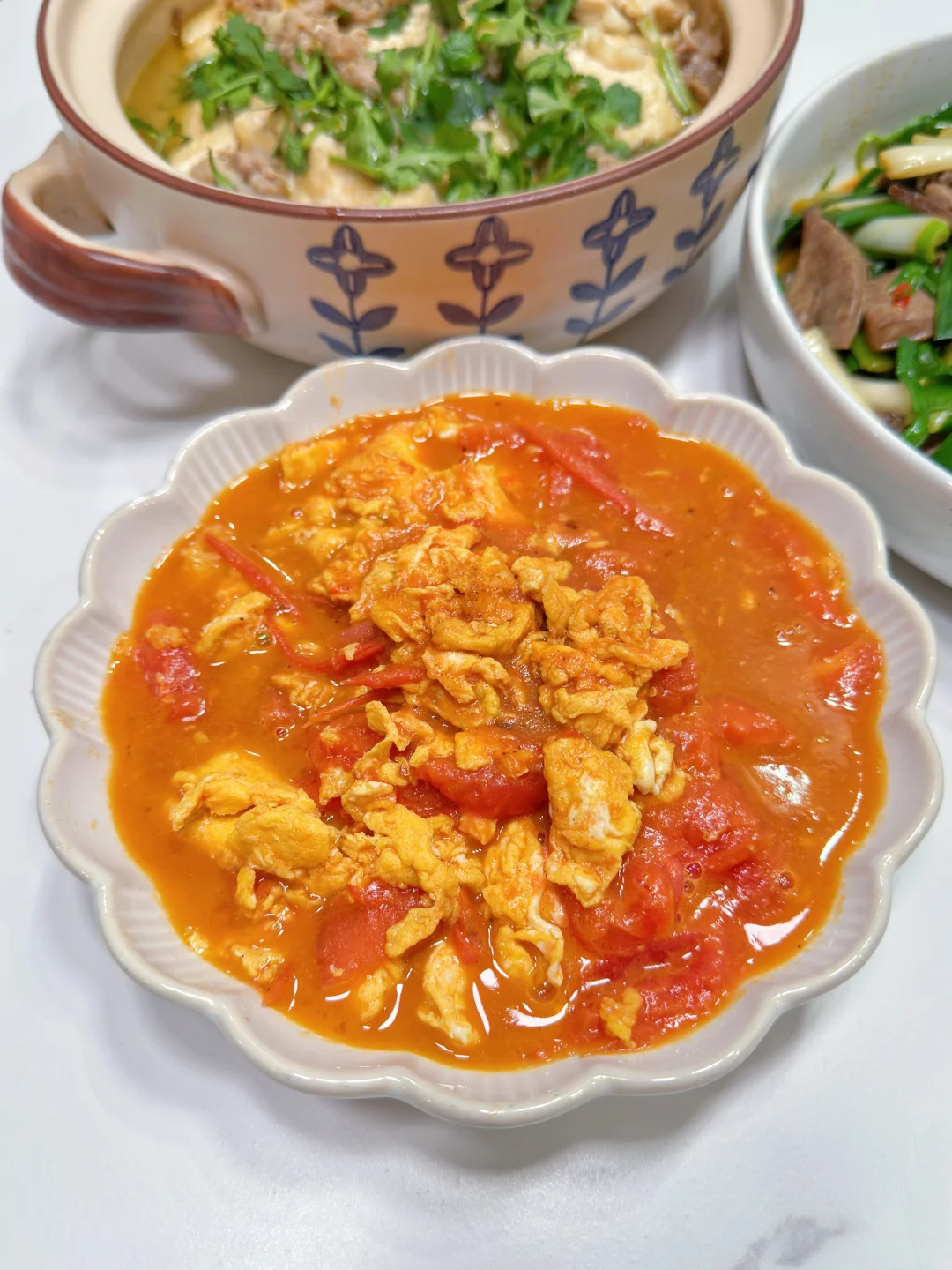 🍃每天都要记得按时吃饭哦 今日份菜单 ⭐️⭐️⭐️青蒜炒猪肝 ⭐️⭐️⭐️肥牛豆腐煲 ⭐️⭐️⭐️番茄炒鸡蛋