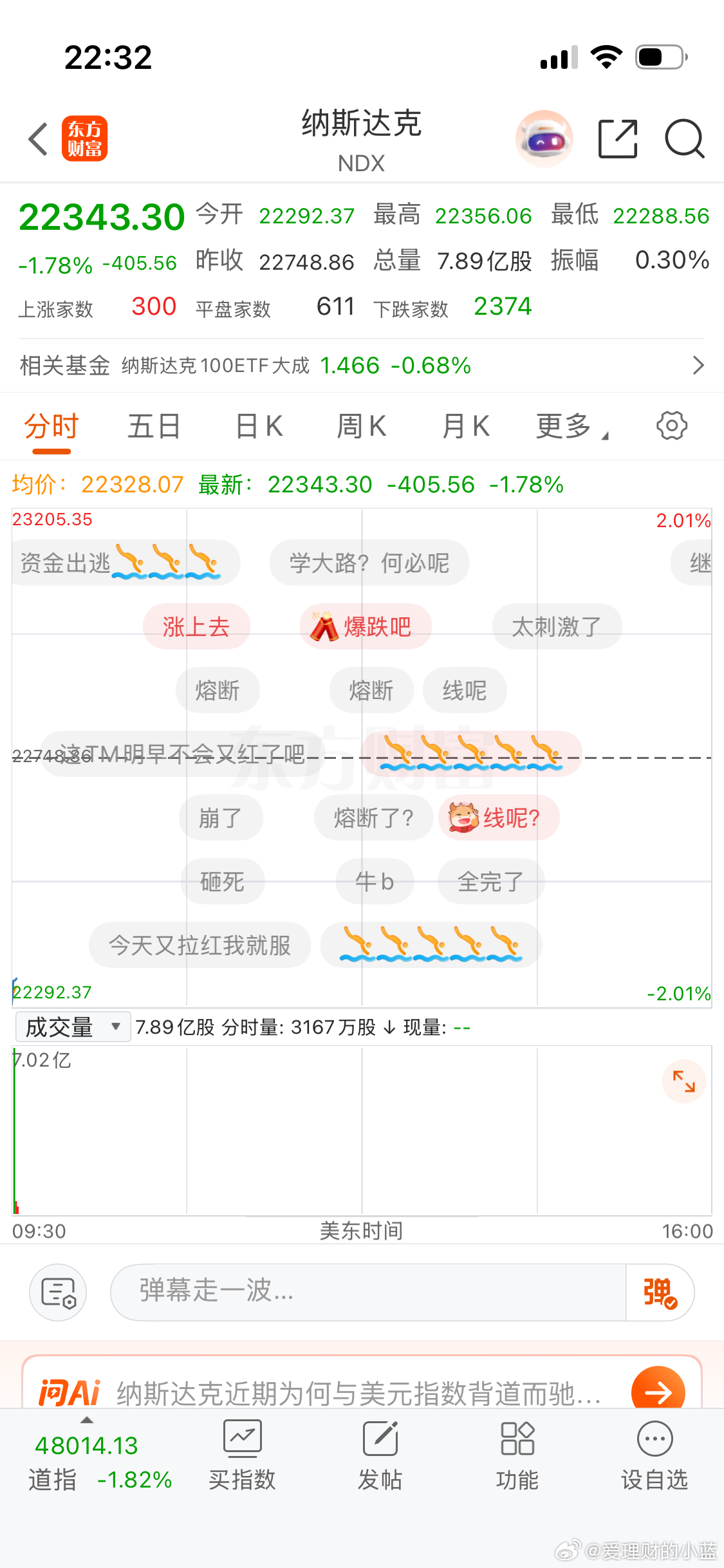 睡了吗?美股纳斯达克科技股暴跌。此刻非常有必要加更一条美股播报。