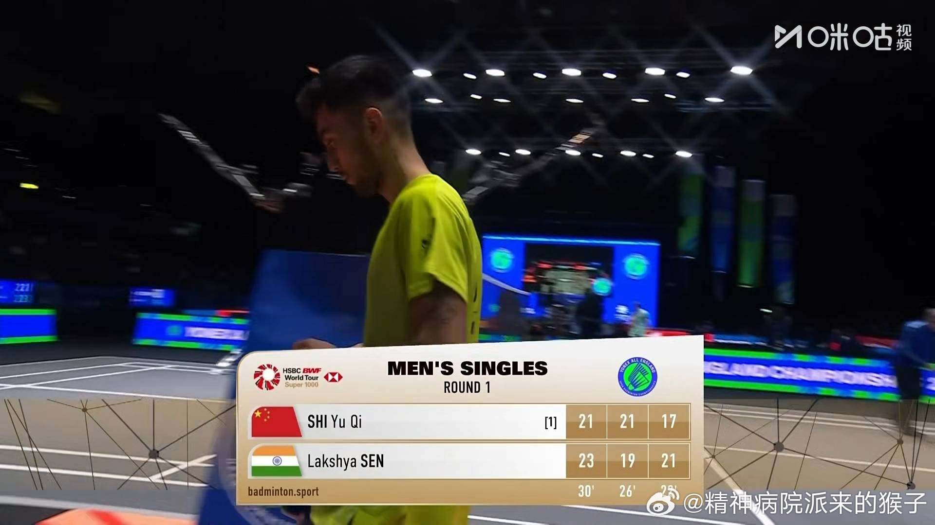 石宇奇1比2拉克什亚(-21,19,-17)止步2026年全英羽毛球公开赛男单三十二强下一轮:拉克什亚🇮🇳VS伍家朗🇭🇰