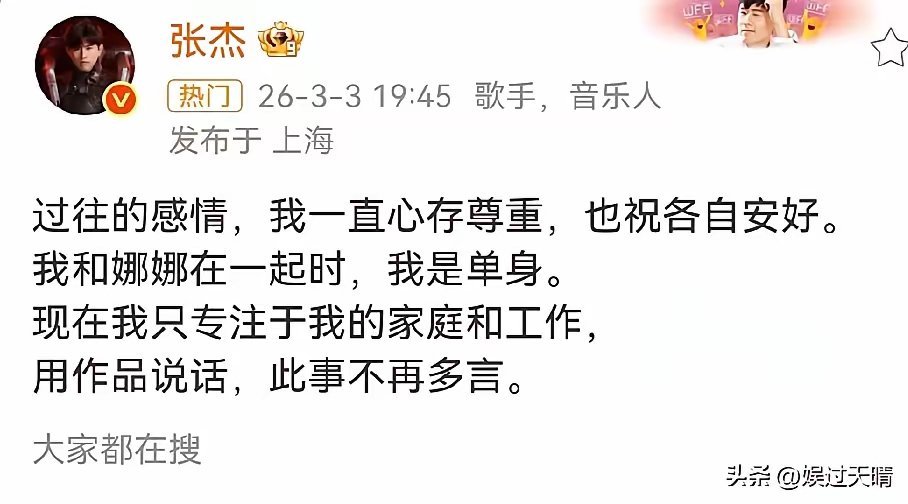 张杰前女友,不想忍了!3月3日,张杰前女友段曦,突然用千字长文,揭开了尘封20年的往事,锤了张杰出轨,也把伤疤狠狠地撕开了。段曦的长文,字字都带着委屈和不甘。她细数自己多年来承受的网络暴力:被造谣“打人”、被篡改时间线,硬生生被编成“第三者”,还被扣上“贪慕虚荣甩了男友,又因男友红了跳出来破坏新恋情”的帽子。这些无稽之谈让她被谩骂数年,澄清的声音被彻底淹没,连男友的妈妈都直言“你挺厉害呀!还动手打人”,几个代言也因为网上风评不好被换掉。她曾在微博澄清过自己没有打人,还祝福过对方,可换来的只有更汹涌的骂声。“我只有一张嘴,我真的顶不住……”于是她选择沉默,把一箱子的照片书信锁了二十年,“谁叫巨蟹座心软呢?”这次发声,段曦说是为朋友鸣不平。她回忆起当年在上海与薛之谦共事的日子,“全公司靠薛一个人撑着,‘养活’一帮兄弟姐妹,然后等着我们一个一个解约离开,他最后一个走。”在她眼里,薛之谦重情重义,所以她无法接受李雨桐未经证实的指控,更看不惯对方理直气壮要求道歉的姿态。