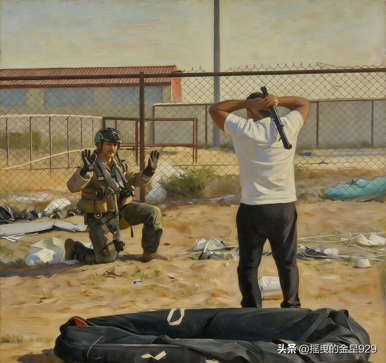 这一幕可以做一幅“世界名画”,列入美军名人堂了。 在现代战争史中,这名美军飞行员绝对算是首屈一指的“美军一哥”了。 在面对中东科威特水管佬时,下跪,举双手,摆出一副投降认怂的姿态,这美军飞行员回头可以吹一辈子了。