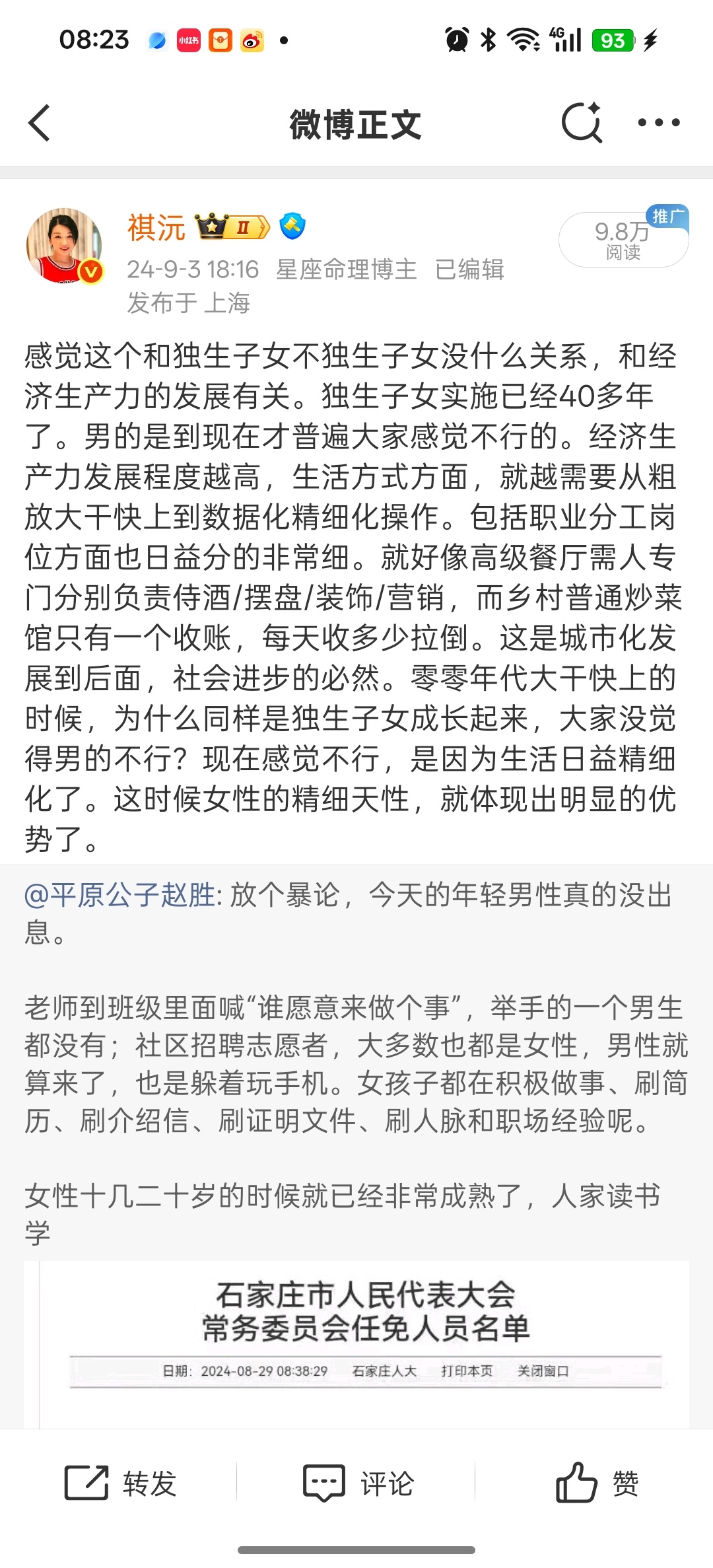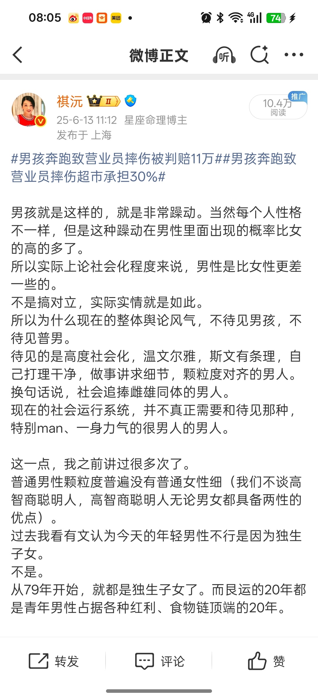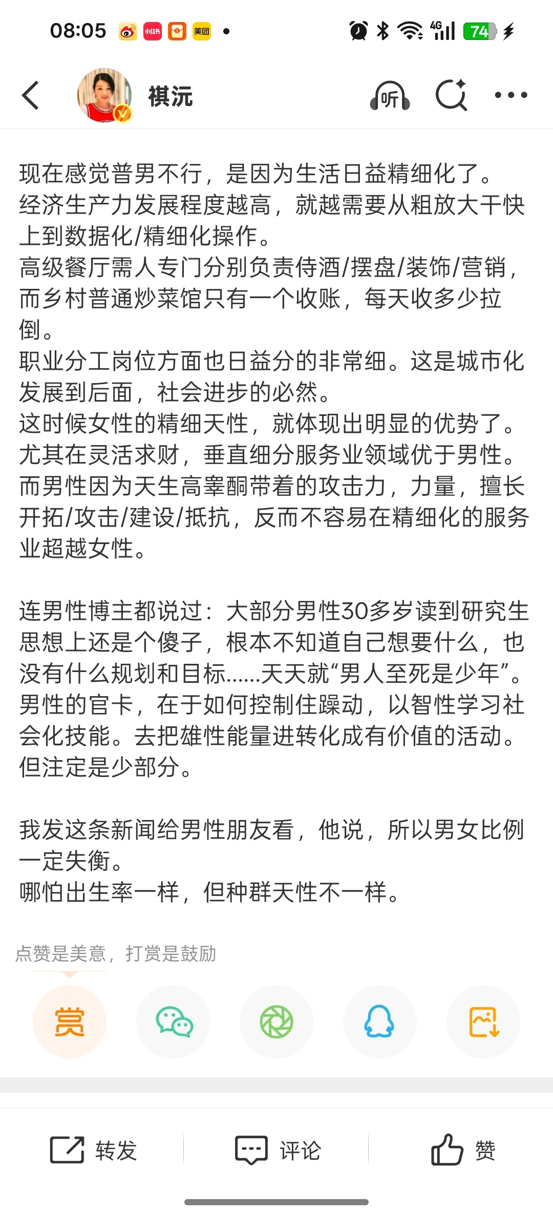 以前提到过,精细天性方面女性总体占优势,这也是一个普遍的社会现象,背后有复杂的社会建构与生理心理因素。