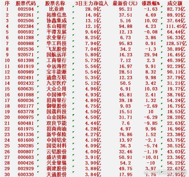 比亚迪:近3日净流入28.0亿元,成交额82.73亿元