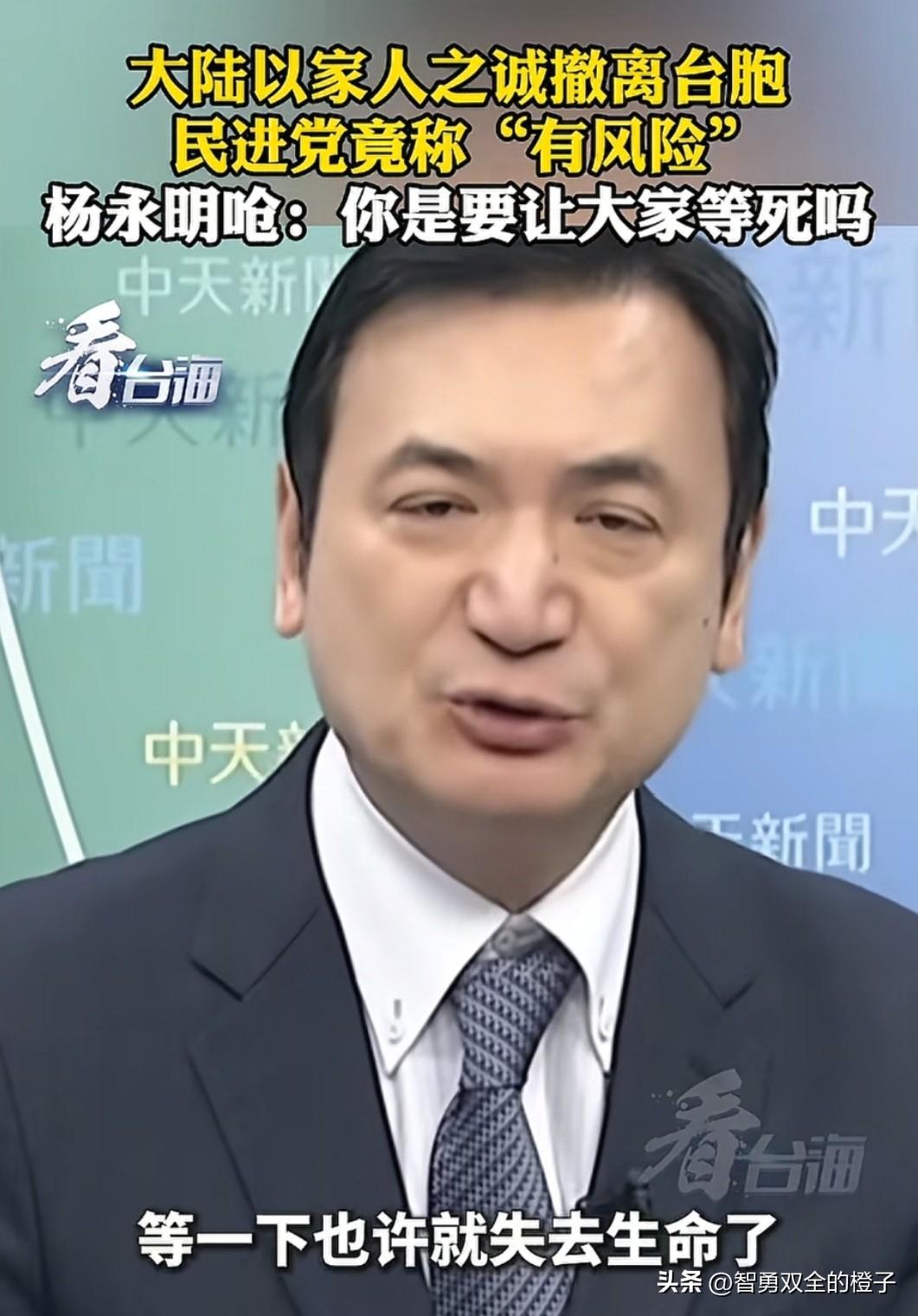 一本正经的胡说八道! 我们不计前嫌的撤侨,只要有台胞证就能撤离,没想到,台湾还有人说:没必要离开,留在当地是最安全的。 自己没能力救人就算了,还把理由说得这么冠冕堂皇,更可气的是,还抹黑大陆撤侨有风险,让台湾同胞不要去登记。 不过台还是有少数清醒的人,名嘴杨永明就直接反问道,大陆那边拿着台胞证,就能第一时间离开,甚至还可以买到比较便宜的机票。 你这样让台湾民众就在当地,万一就在当地发生意外,又该谁来负责? 台湾同胞应该明白了吧,只有强大的祖国才能保护好你们,应该相信祖国,别再被某些人蒙骗了,醒醒吧!