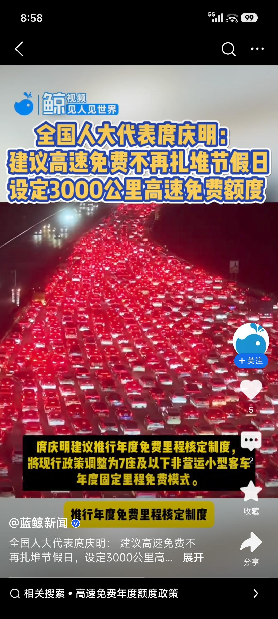 全国两会有代表建议,把传统节假日高速免费政策,改成每辆车每年固定3000公里免费,适用7座及以下非营运小客车。现在节假日免费时,高速拥堵成常态,事故发生率也高,体验极差,而且爱跑长途的用户收益更大,有失公平。 改成“年度免费里程包”就好多了,车主能灵活选择出行时机,像平日返乡、周末旅游等都能用免费额度。这样能释放路网压力,降低事故风险,还能节能减排。全国ETC联网,技术上也能实现自动扣除免费公里数,感觉这建议挺不错!