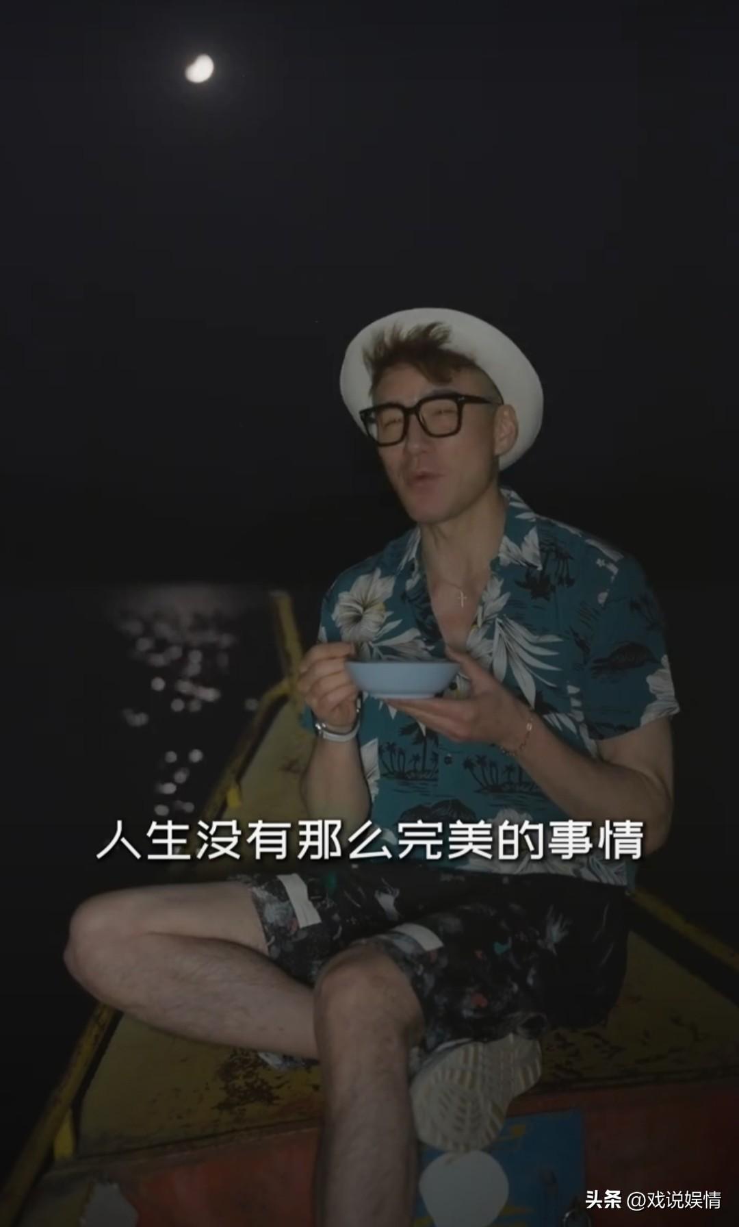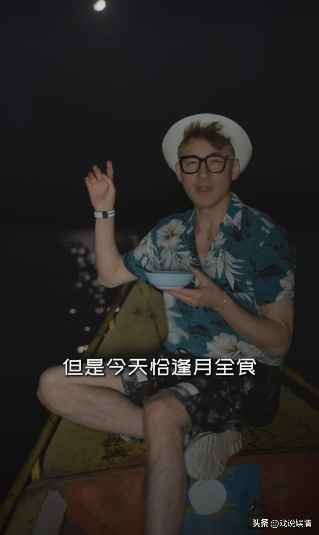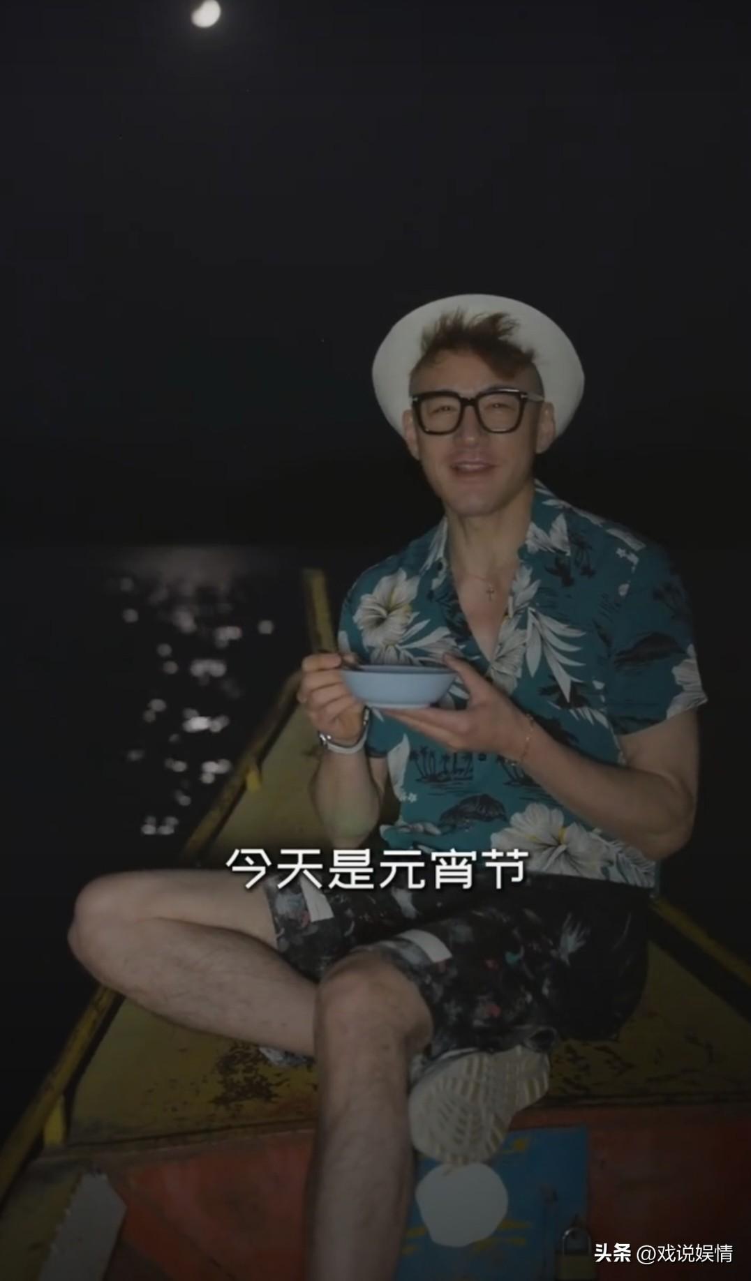 胡兵在泰国清迈的船上度元宵节! 3月3日元宵节,胡兵晒出一则视频。视频中的他正在泰国清迈的一条船上。为了过传统节日,胡兵打算在船上吃着汤圆,欣赏圆月。 可惜天公不作美,恰逢月全食,看不到月亮,只能默默地品尝汤圆了。不过胡兵的心态是超级好:“人生没有那么完美的事情”。 是啊,不完美才是人生!胡兵这个元宵节过得真惬意!