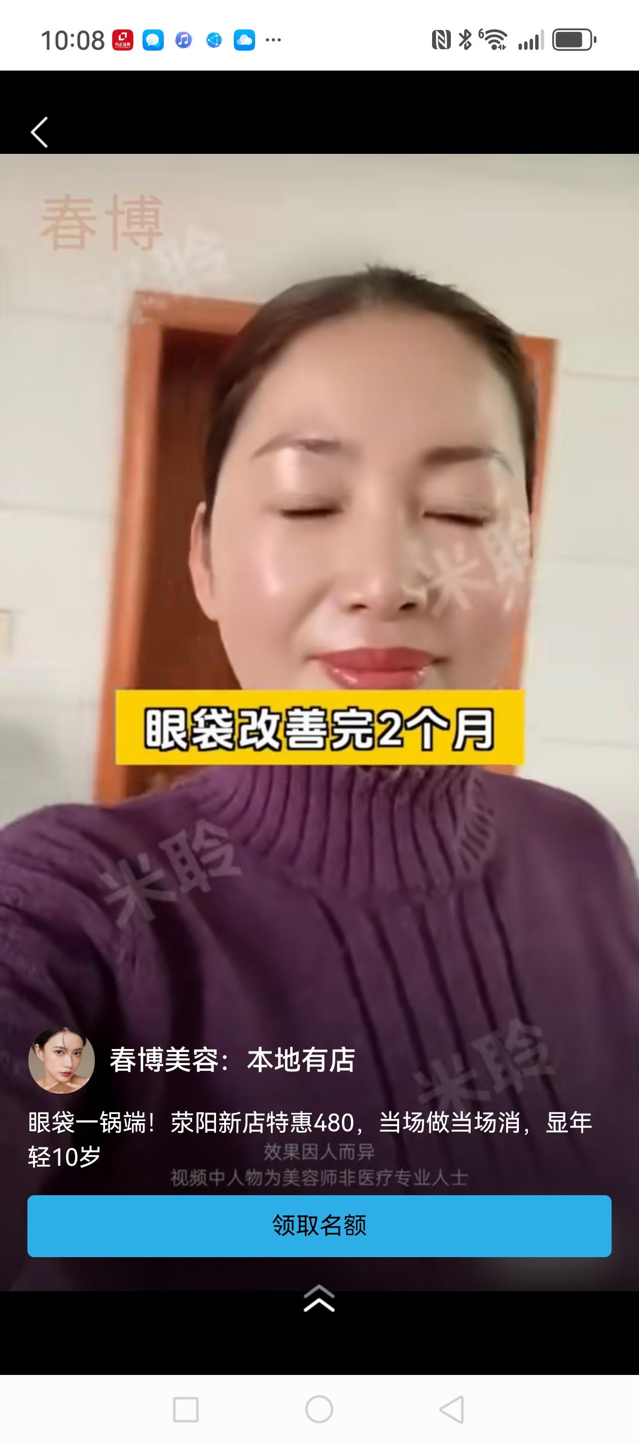 看一眼相当400元钱!除非你认为三四百元钱是小钱,否则不要被忽悠!我去年十月份花480元做了一次,没有任何改善,他们说3个月后会消除!过了元旦过春节没有一点改变!