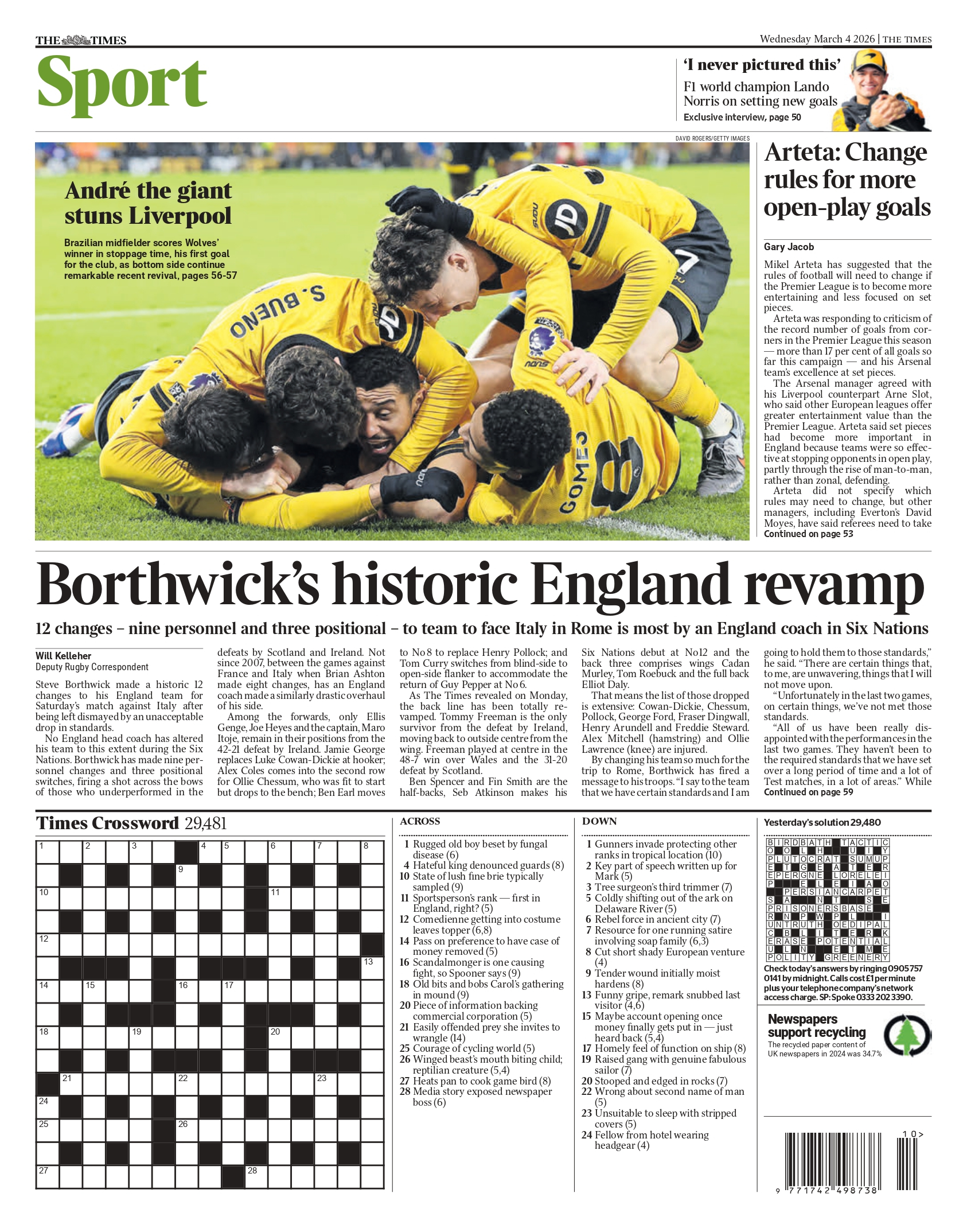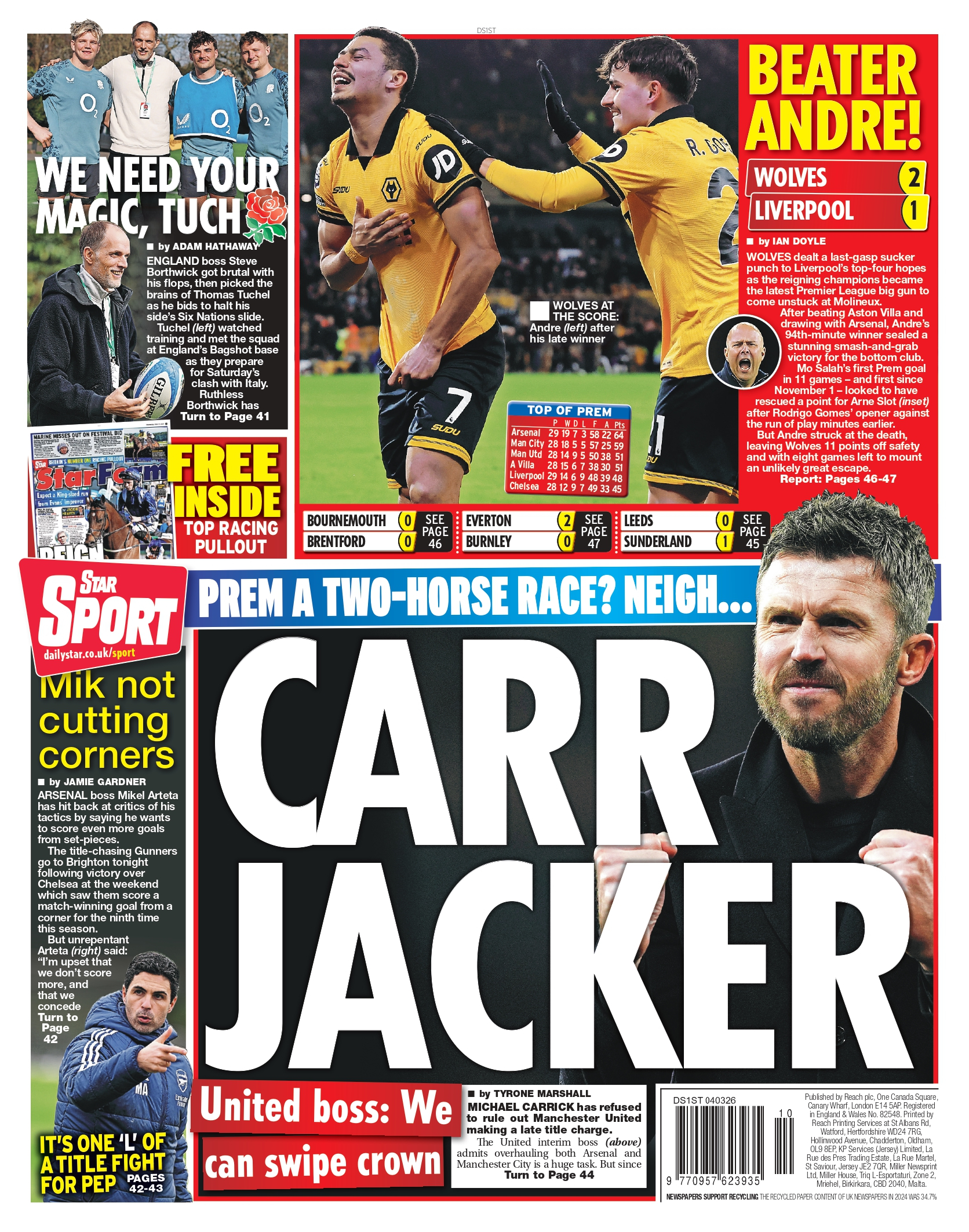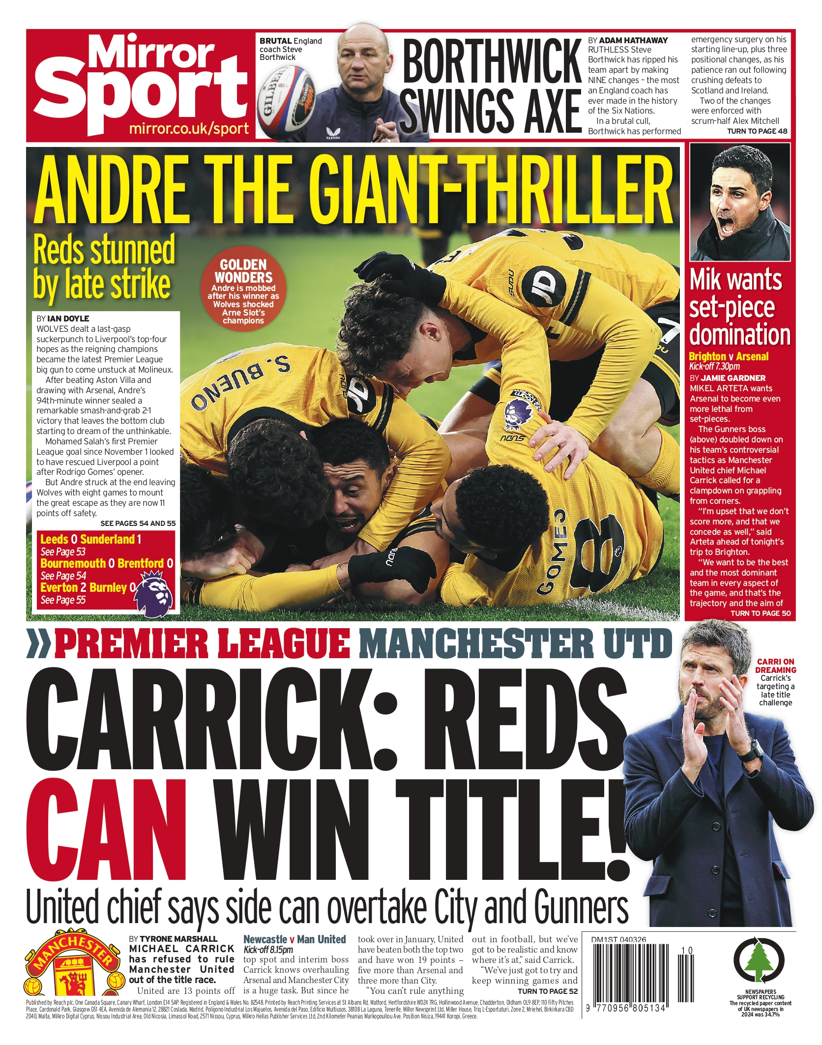 虽然萨拉赫打入122天来的第一个英超进球,但安德烈的进球是英超历史上首次有处于降级区的球队,在 90 分钟后打入制胜球击败卫冕冠军。