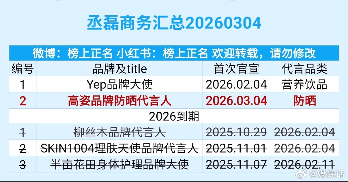 丞磊商务资源好虐,只有两个代言,还基本都是3个月的短代
