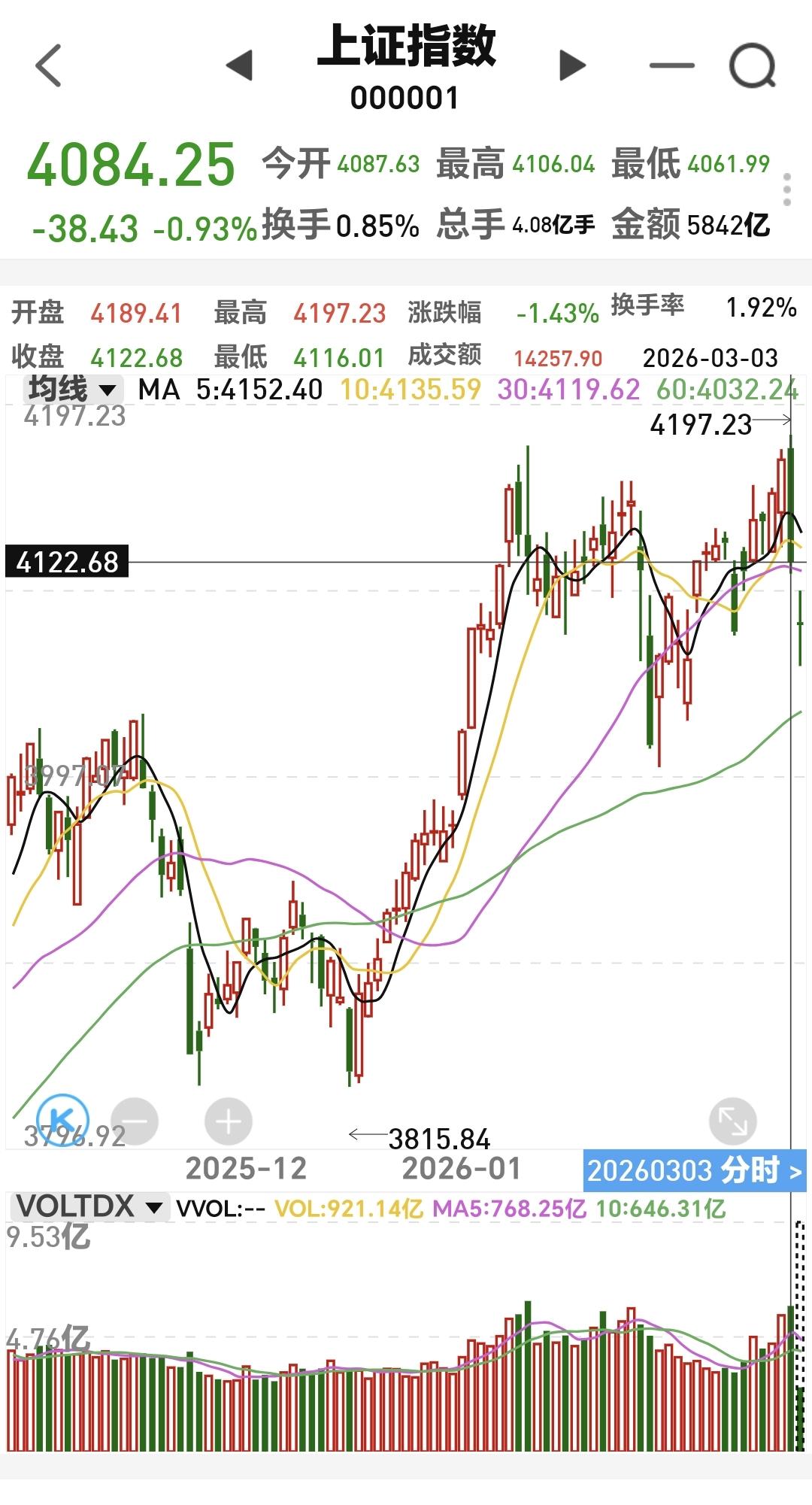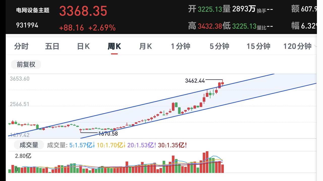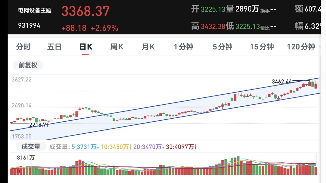 基金:电网设备板块能不能继续持有 今天市场低开以后小幅度震荡,现在三大指数都处于下跌中,创业板指下跌了0.76%,盘中点位3185点,证指数下跌了0.87%,盘中点位4086点,富时a50现在盘中下跌了2.13%。 今天盘中最高4106点,昨天盘中最低4116点,还有10个点的缺口没有回补,今天盘中观察能不能最高突破4116点,不一定要求收盘站在4116点上方,只要求盘中最高能够到达4116点上方,如果收盘的时候能够站到4116点上方那就更好了。 现在黄色线还是在蓝色线上方,两条线之间的敞口还是比较大,这就表明了今天不会像昨天那样继续大幅度下跌,但上午到现在为止的盘中反弹都是弱反弹,后面继续观察有没有力度强一点的反弹,这样的盘面需要有一个力度很强的反弹才行。 两市累计成交12478亿,相比于昨天同期缩量了23%,盘中还出现一个现象,那就是在下跌的过程中放量,在反弹的过程中缩量,上涨2100多家,下跌3100多家,下跌家数超过了上涨家数,涨停30家,跌停27家,涨停家数超过了跌停家数,主力资金净流出248亿。 整个市场主力资金净流入最多的三个板块是:电网设备板块,农林牧渔板块,农业板块,主力资金净流出最多的三个板块是:蓝筹策略板块,esg板块,国企板块。 持有基金现在盘中估值亏损了7669元,盈利金额最大的三个板块是:芯片半导体板块,军工板块,新能源汽车板块,亏损金额最大的三个板块是:证券板块,白酒板块,创新药板块。 整个市场上涨幅度最大的三个板块是:存储芯片板块,低空经济板块,军工板块,下跌幅度最大的三个板块是:黄金板块,海外基金板块,煤炭板块。 电网设备板块现在盘中估值上涨了1.27%,持有人数在所有板块当中排名第七位。 电网设备板块日线级别处于上涨通道中,今天的上涨没有改变这个板块日线级别的上涨趋势,短线持有的人可以继续持有。 电网设备板块周线级别处于上涨通道的上方,也是处于上涨趋势中长线持有的人,可以继续持有,除非周线级别上涨趋势被改变。 电网设备板块日线级别和周线级别都是处于上涨趋势中,短线和长线持有的人都可以继续持有。 花1秒钟点赞,花30秒钟评论,就是对我最大的支持,谢谢大家的支持。
