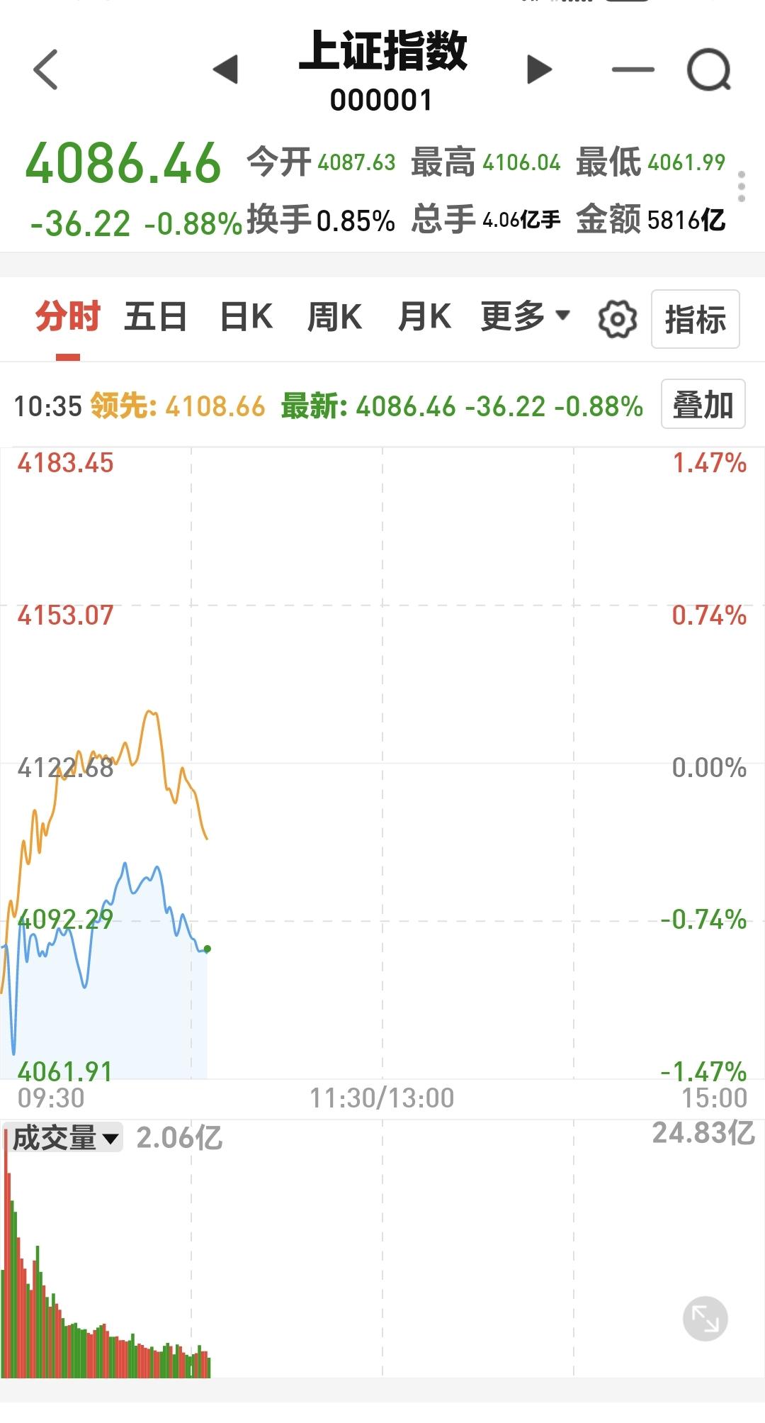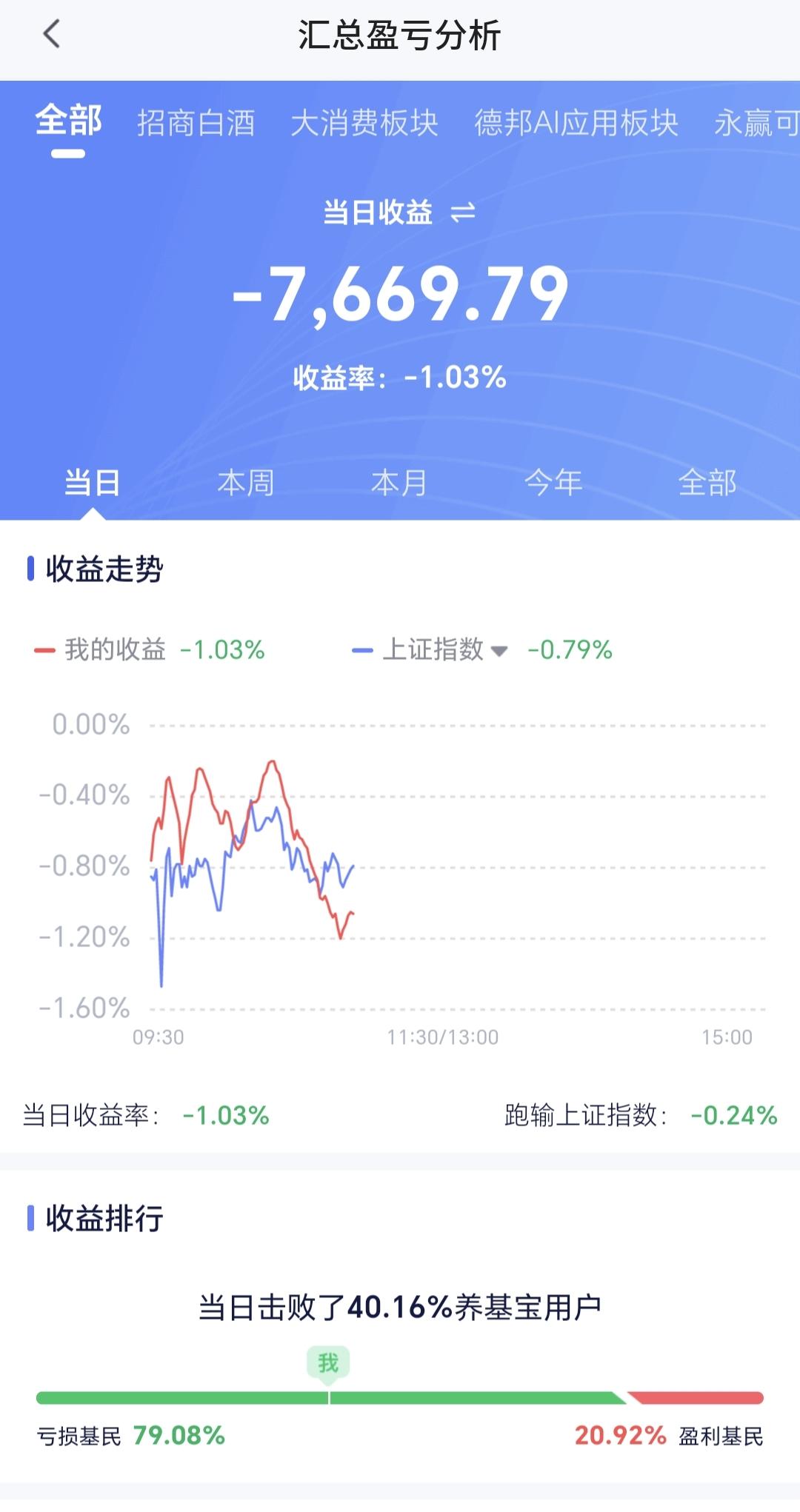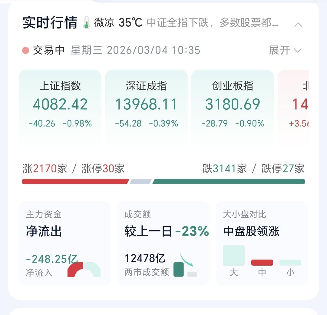 基金:电网设备板块能不能继续持有 今天市场低开以后小幅度震荡,现在三大指数都处于下跌中,创业板指下跌了0.76%,盘中点位3185点,证指数下跌了0.87%,盘中点位4086点,富时a50现在盘中下跌了2.13%。 今天盘中最高4106点,昨天盘中最低4116点,还有10个点的缺口没有回补,今天盘中观察能不能最高突破4116点,不一定要求收盘站在4116点上方,只要求盘中最高能够到达4116点上方,如果收盘的时候能够站到4116点上方那就更好了。 现在黄色线还是在蓝色线上方,两条线之间的敞口还是比较大,这就表明了今天不会像昨天那样继续大幅度下跌,但上午到现在为止的盘中反弹都是弱反弹,后面继续观察有没有力度强一点的反弹,这样的盘面需要有一个力度很强的反弹才行。 两市累计成交12478亿,相比于昨天同期缩量了23%,盘中还出现一个现象,那就是在下跌的过程中放量,在反弹的过程中缩量,上涨2100多家,下跌3100多家,下跌家数超过了上涨家数,涨停30家,跌停27家,涨停家数超过了跌停家数,主力资金净流出248亿。 整个市场主力资金净流入最多的三个板块是:电网设备板块,农林牧渔板块,农业板块,主力资金净流出最多的三个板块是:蓝筹策略板块,esg板块,国企板块。 持有基金现在盘中估值亏损了7669元,盈利金额最大的三个板块是:芯片半导体板块,军工板块,新能源汽车板块,亏损金额最大的三个板块是:证券板块,白酒板块,创新药板块。 整个市场上涨幅度最大的三个板块是:存储芯片板块,低空经济板块,军工板块,下跌幅度最大的三个板块是:黄金板块,海外基金板块,煤炭板块。 电网设备板块现在盘中估值上涨了1.27%,持有人数在所有板块当中排名第七位。 电网设备板块日线级别处于上涨通道中,今天的上涨没有改变这个板块日线级别的上涨趋势,短线持有的人可以继续持有。 电网设备板块周线级别处于上涨通道的上方,也是处于上涨趋势中长线持有的人,可以继续持有,除非周线级别上涨趋势被改变。 电网设备板块日线级别和周线级别都是处于上涨趋势中,短线和长线持有的人都可以继续持有。 花1秒钟点赞,花30秒钟评论,就是对我最大的支持,谢谢大家的支持。
