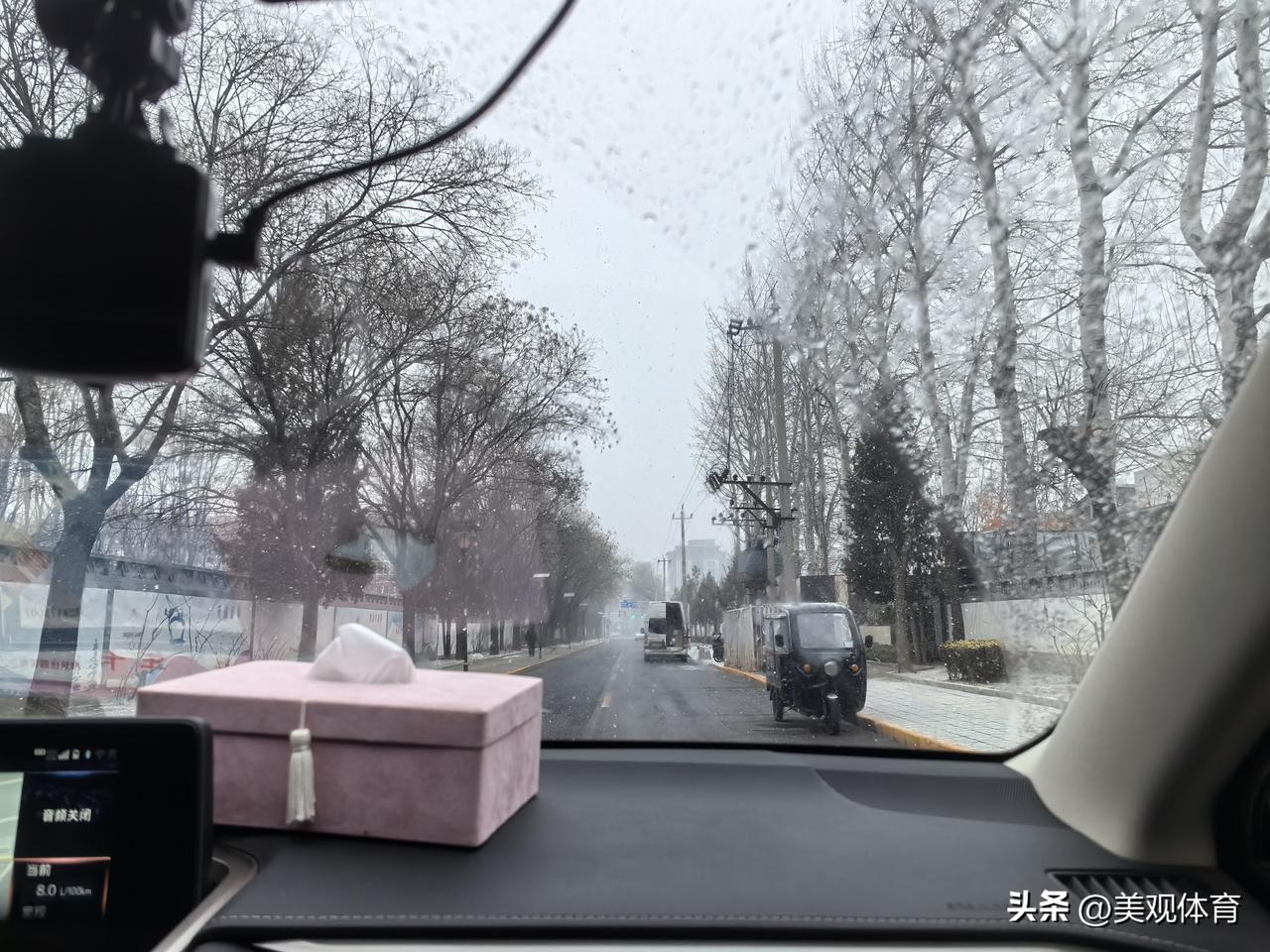 刚进店交了加油费,出门就飘起了雪花。