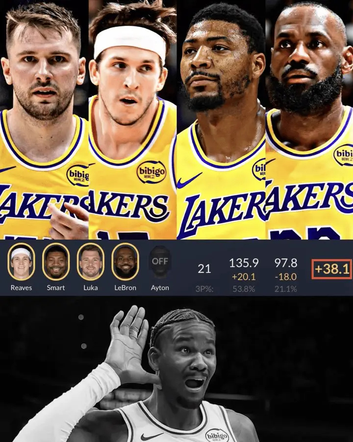 根据数据统计,本赛季当艾顿不在场时,湖人首发四人组净效率值高达+38.1。