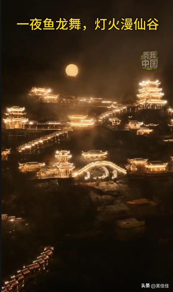 这景色太震撼了,真有点冲动想去看看了。 查询了下望仙谷,原来这里不仅有“一夜鱼龙舞”的绝美夜景,还是藏在江西大山里的千年仙境。它坐落在上饶广信区,以山、水、崖、谷、村为核心,将自然山水与赣东北民居完美融合。 这里的夜景是最大的亮点,夜幕降临后,整座山谷被万盏暖黄灯光点亮,错落有致的吊脚楼依山而建,在月色映照下宛如天宫。据说为了呈现这种效果,景区精心设计了灯光布局,让古建筑与自然景观交相辉映。 除了赏景,这里还有超多体验项目,比如走悬崖栈道、看非遗打铁花、逛古风市集,白天能感受山水之灵,夜晚能沉浸梦幻之境。这个春天,真该安排一场奔赴望仙谷的旅行,去亲身感受这现实版的仙侠世界。