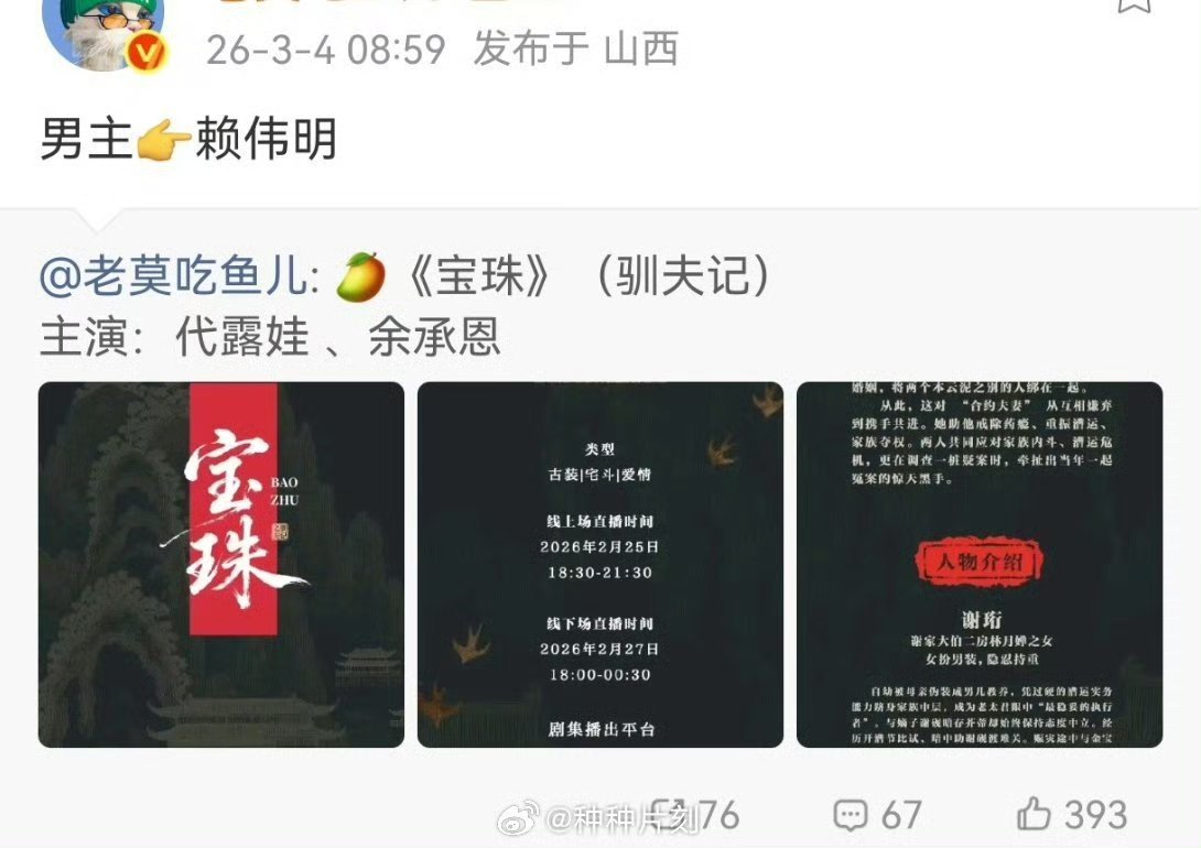 宝珠男主赖伟明换余承恩网传《宝珠》男主余承恩换成赖伟明!网传宝珠男主换角