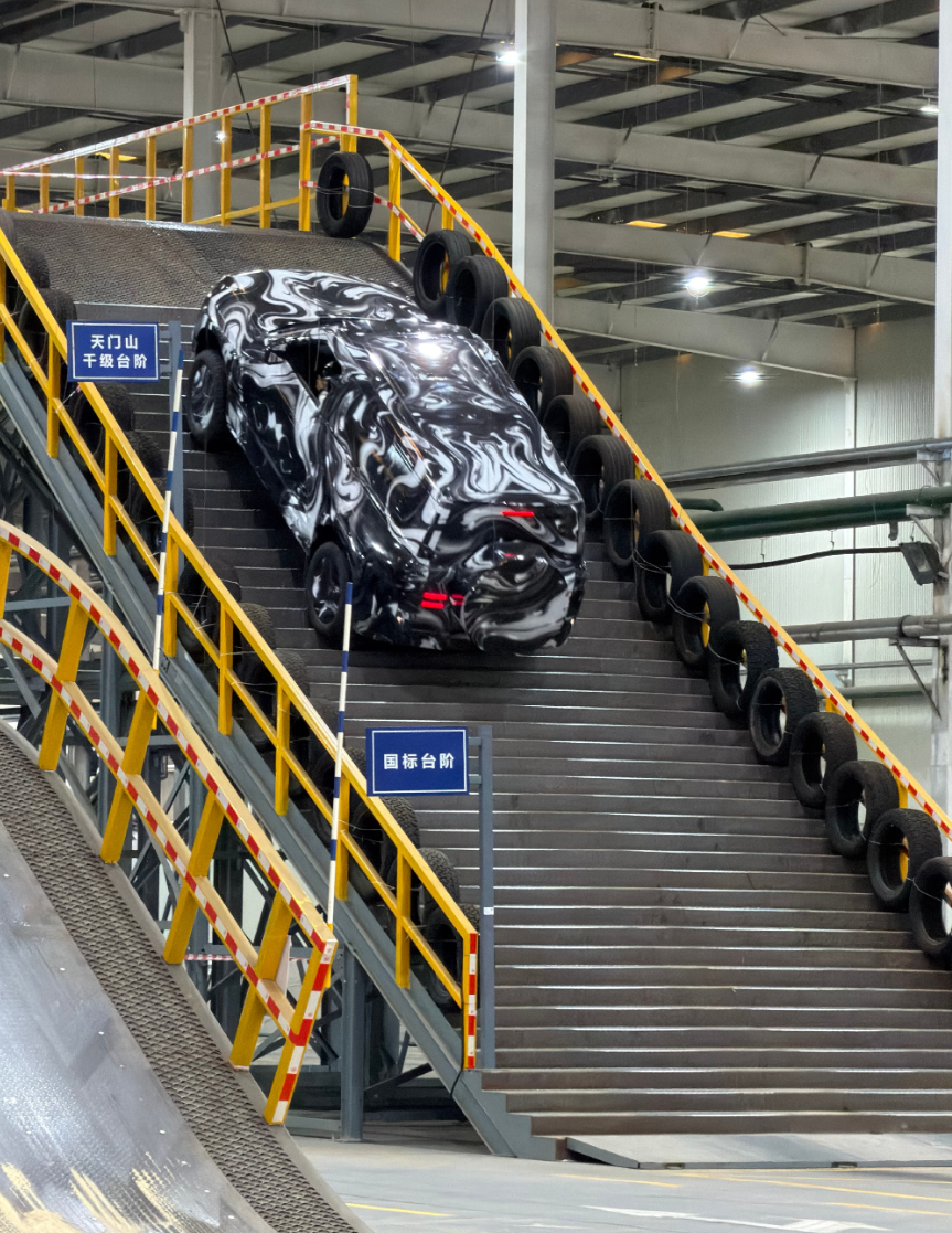视频里,比亚迪直接在厂房复刻了天门山千级天梯,一辆贴满伪装膜的汽车,轻松就爬了上去,而且右下角屏幕显示“第1289次测试”,看起来这不是作秀啊。如此强大实力,我没猜错的话应该就是新款仰望U8,毕竟这款硬派越野的气场藏不住。