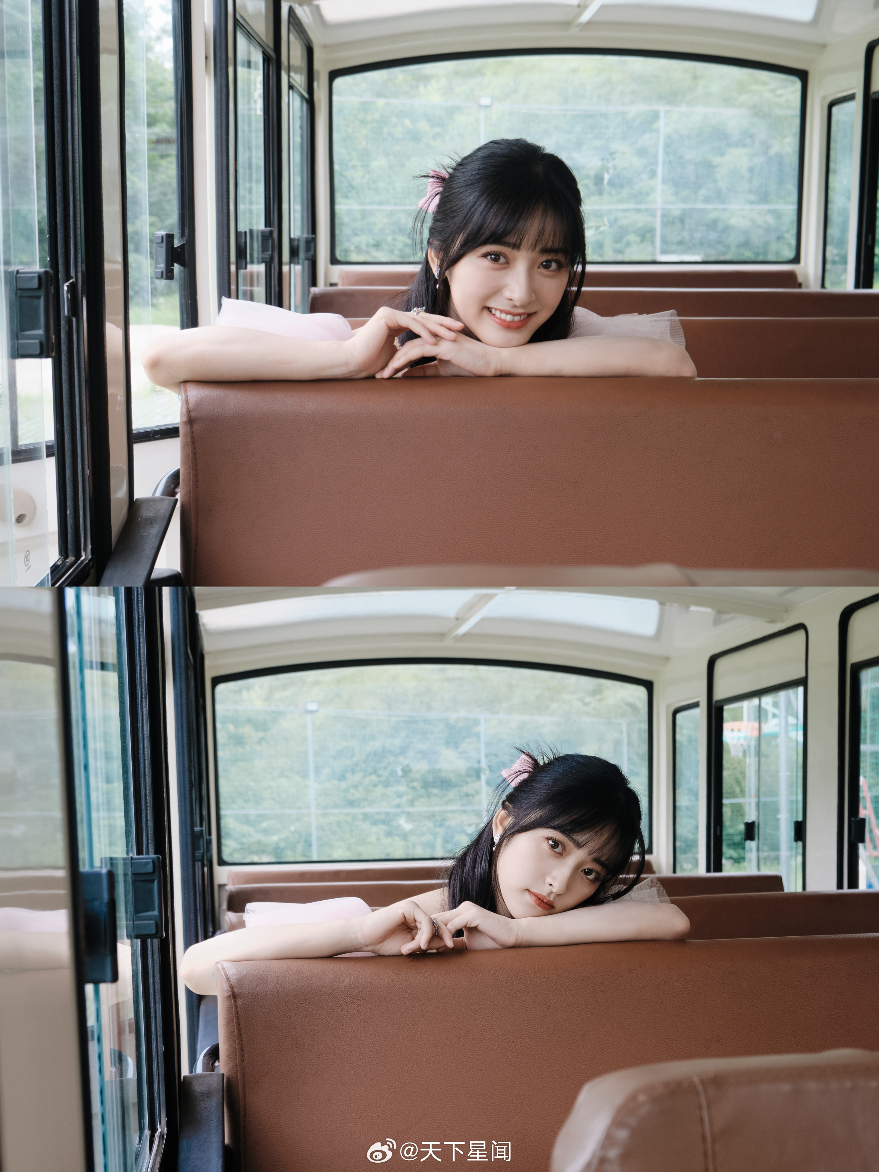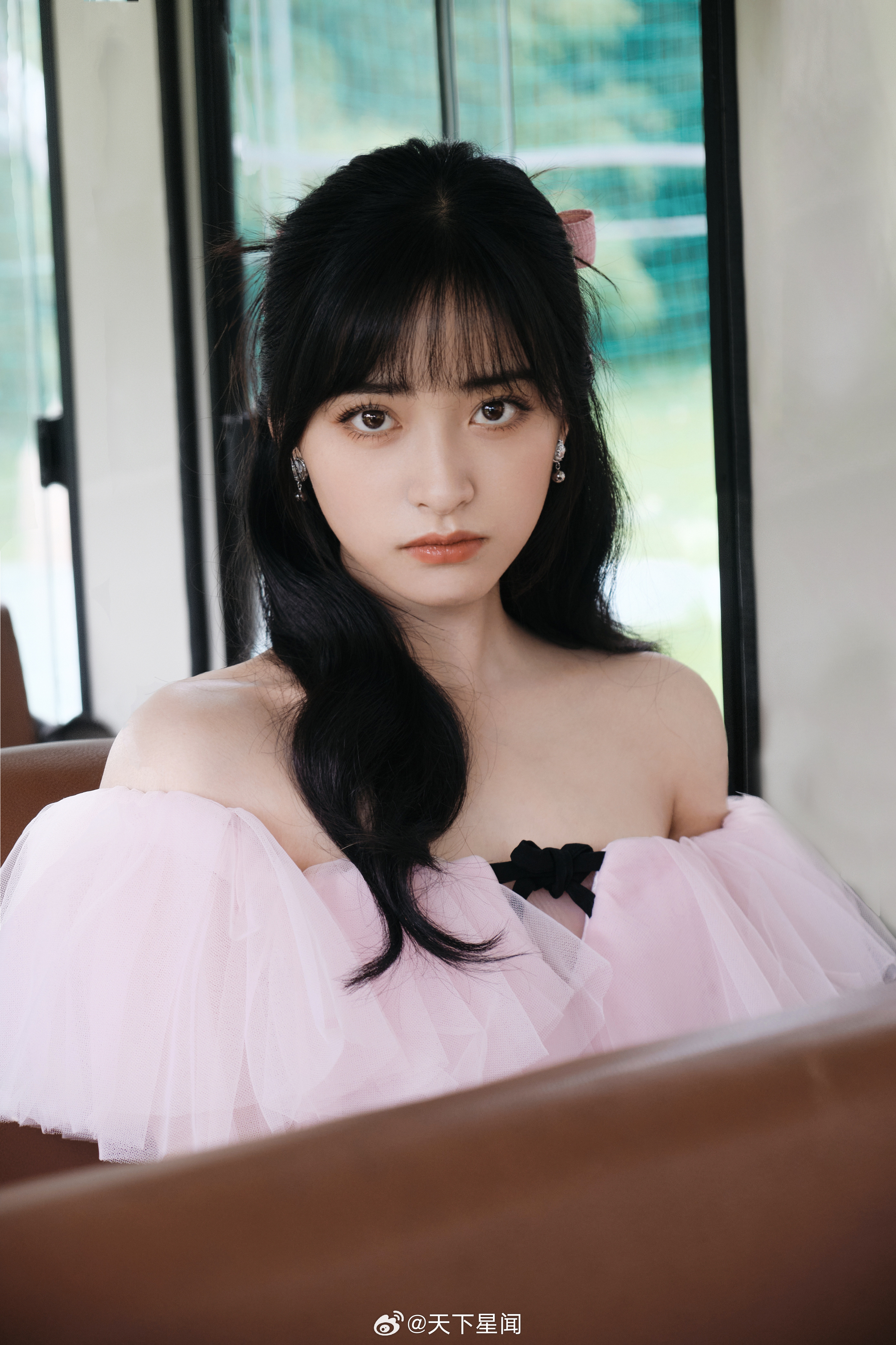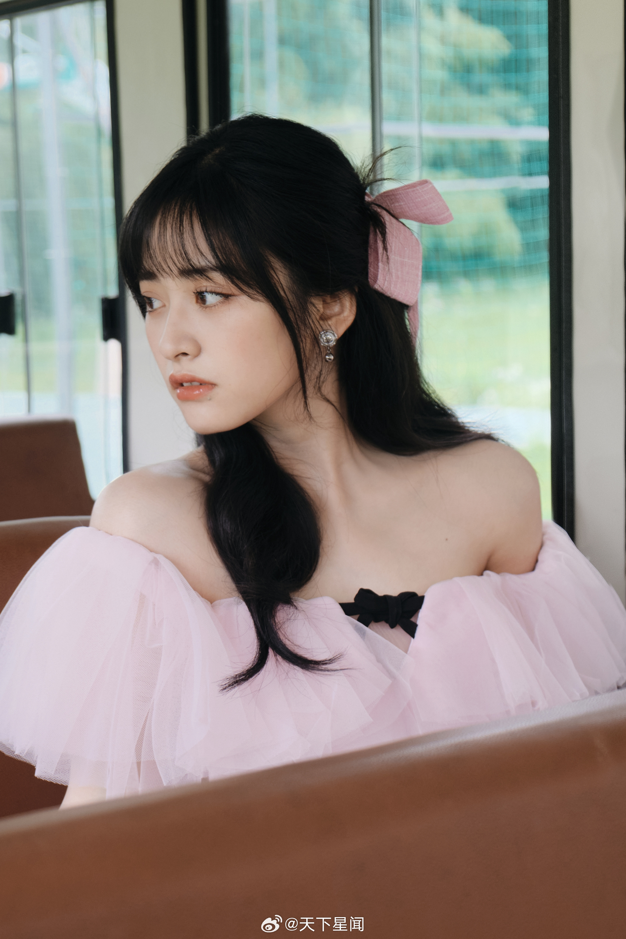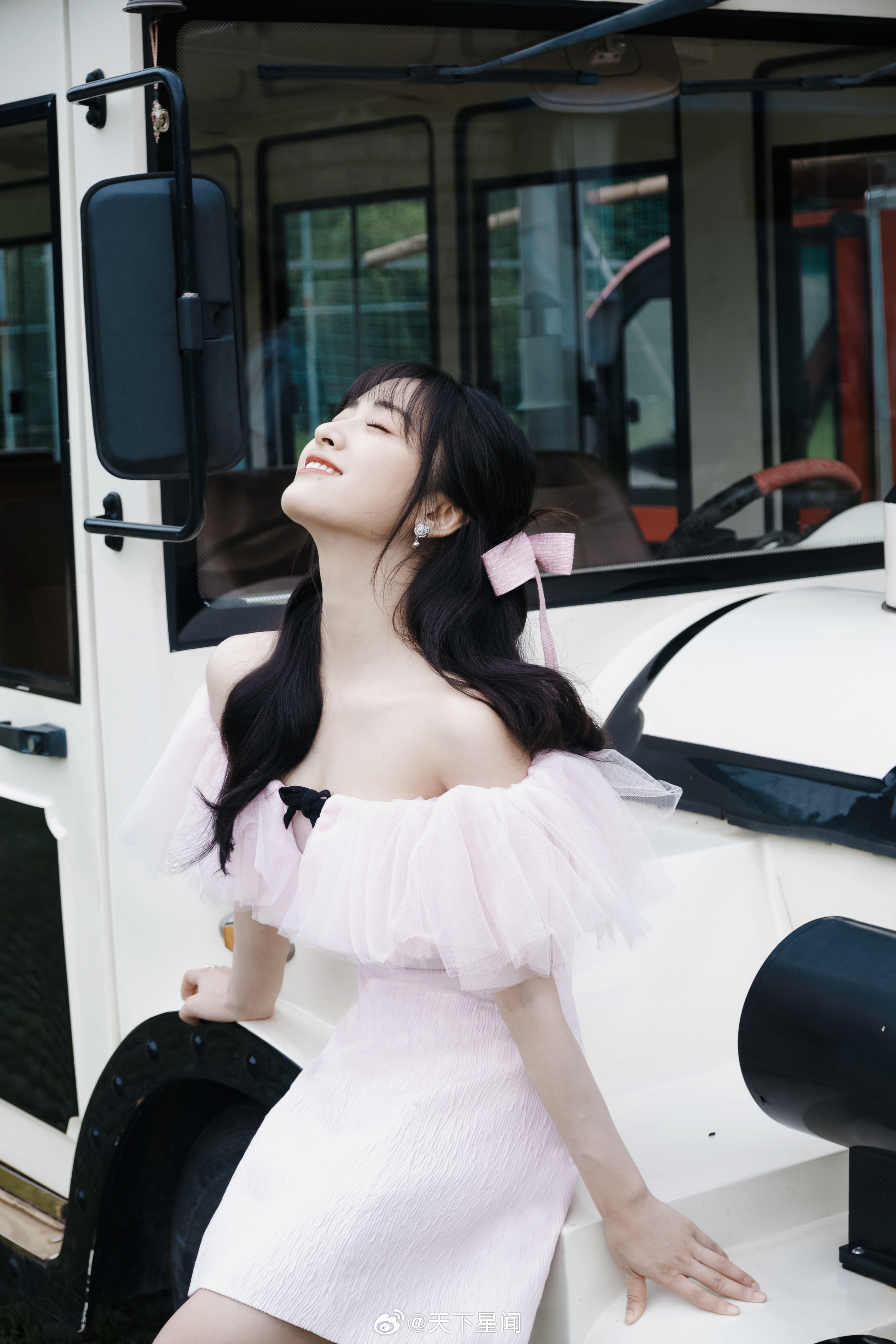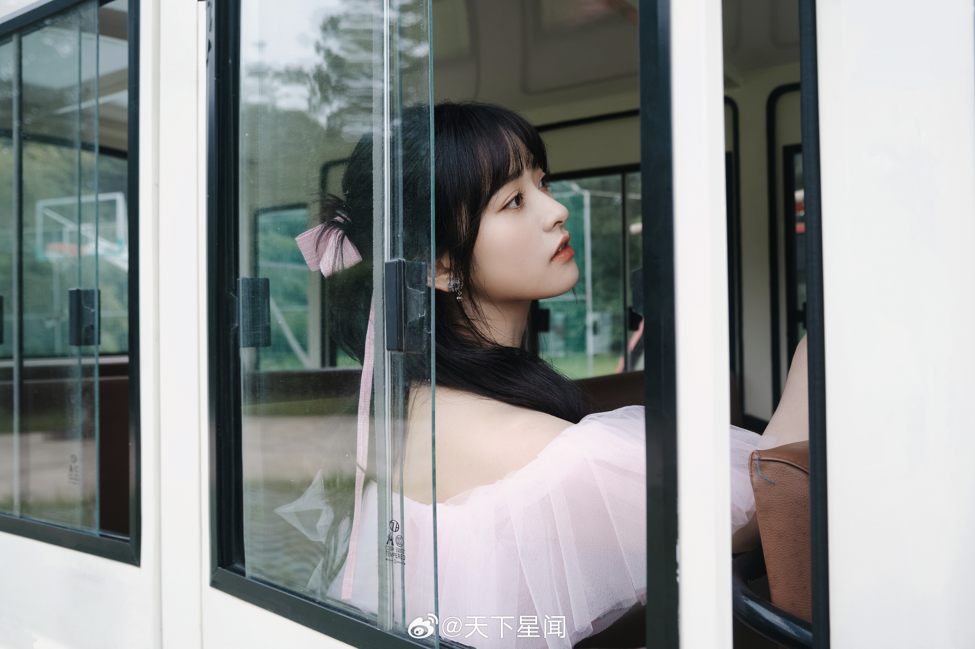 杨颖在落地窗前穿着百褶裙的baby妈妈