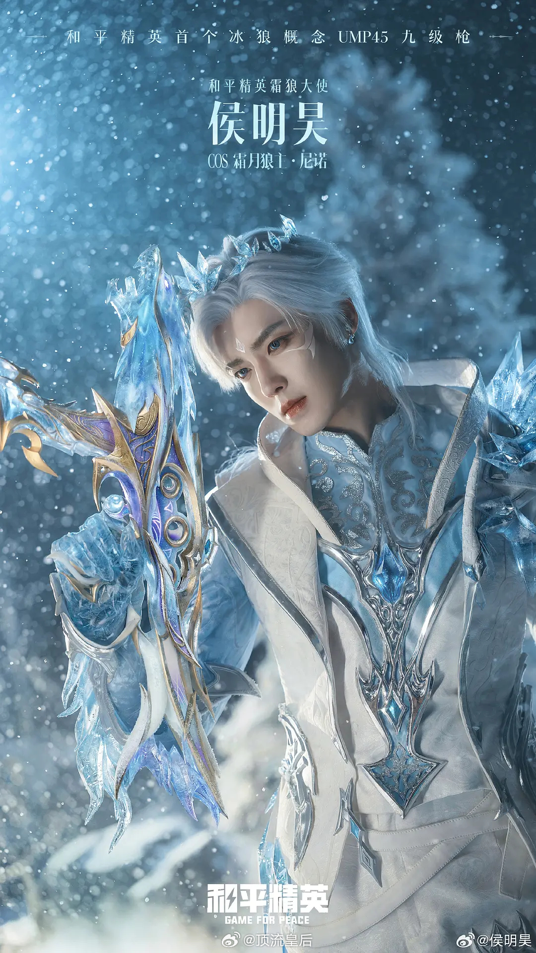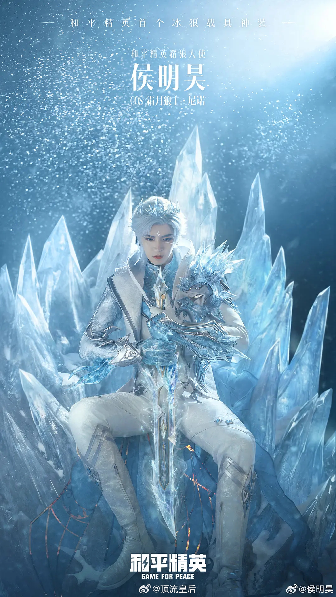 侯明昊COS【和平精英】霜月狼主,冰雪国王,完美建模脸。
