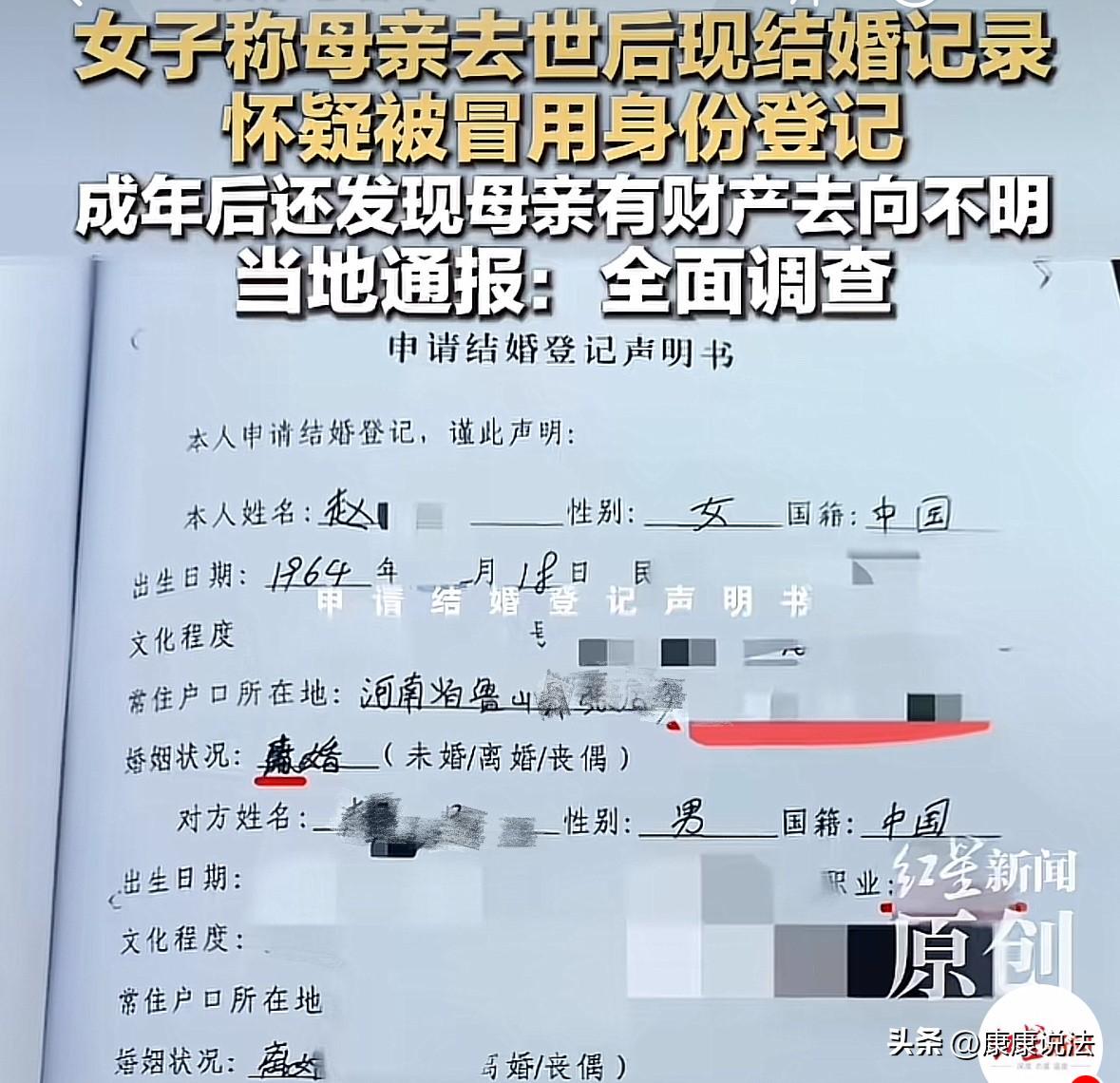 披着亲戚外衣的谋财害命!河南一女子,母亲10年前离世,舅舅和小姨为了分赃母亲名下多处房产和珠宝,竟利用各种社会关系,将“母亲复活”,让舅妈冒用母亲身份,与舅舅结婚,吞并其遗产。如今女孩19岁,继承母亲遗产时,却发现钱没了、房没了,啥都没了,甚至连女孩亲爸的抚养权,都被人用假文件抢走了,父女俩十几年都见不到一面。网友:这不是简单的龌龊,是披着亲戚外衣的谋财害命,更是基层办事环节的集体失守,严查,必须严查。 河南,女孩孙某正经历着比噩梦还可怕的事儿。她难以想象,朝夕相处的亲人,竟然是人面兽心的恶人。 孙某口中朝夕相处的亲人,是她的亲舅舅和亲小姨,是母亲离世后,这个世上于她而言最亲的两个人。 孙某母亲在她9岁那年患病离世,彼时,她什么都不懂,更不知道母亲的离世对她而言,意味着什么。 不过当时,还好有舅舅和小姨在身边,一直“守护”着她。这让幼小的她,不至于无家可归,恐慌害怕。 可年幼的她根本预想不到,这看似温馨的亲情背后,实则是一场阴谋。 而这场阴谋,全是因为孙某母亲生前留下的那些房产和金银珠宝。 舅舅和小姨,为了能顺利分赃这些钱财,竟然想出了一个极其荒唐的办法——让“母亲在系统里复活”,然后让舅妈顶替其身份。 这样,舅妈就可以用孙某母亲的身份,办理各种关于遗产分配的事情,简单快捷方便。 在孙某母亲去世仅14天后,舅舅和小姨就迫不及待地暗箱操作,利用各种社会关系,上下打点,找律师写委托书,委托小姨出售其名下所有房产。 而不菲的售房款,之后便妥妥地进了小姨的口袋。 更不可思议的是,母亲去世一年后,竟和舅舅结了婚,结婚照上的照片,用的是舅妈的脸。 然而,舅舅和小姨这番操作,孙某因年幼并不知情,也从没有过问过母亲的遗产。 日子一天天过去,孙某一天天长大,到了19岁。她想着自己已经成年,可以去继承母亲的遗产了。 可谁能想到,当她去办理相关手续时,业务员却说,孙某不是其母亲的唯一子女,无法办理继承手续,另外母亲名下只有一间商铺,并不像孙某所言,有多处房产。 孙某听闻,足足在原地呆滞了5分钟,等缓过神来,才意识到,其中有妖。 她顺着掌握的线索查了下去,才发现,早在10年前,舅舅和小姨就已经暗箱操作,分赃了母亲的遗产。 更过分的是,连孙某亲爸的抚养权都被人用假文件抢走了,使得父女俩十几年没见面。 她不明白,舅舅和小姨为何如此恶毒下作,为了钱能做出如此伤天害理的事儿。 孙某决定,既然舅舅和小姨不仁,她便不再顾及亲情,开始四处奔走,讨公道,可过程却困难重重。 最终,她选择利用媒体曝光此事,争取自己的合法权益。 舅舅和小姨作为孙某的亲戚,本应给予她关爱和帮助,却在利益的驱使下,做出如此丧心病狂的事,这哪里还是亲戚,分明就是谋财害命的恶魔。 另外有网友吐槽说: “死人能办身份证?能结婚登记?能过户房产?房产、婚姻登记、户籍房产交易的一道道审核,全成了摆设。 是玩忽职守,还是利益绑定? 希望相关部门能够重视这起事件,严查到底。” 《刑法》第280条规定:伪造、编造居民身份证的,处三年以下有期徒刑,拘役,管制或者剥夺政治权利。 舅舅和小姨身为亲人,理应照顾孙某,反倒为了钱干出了无下限的事情,毫无亲情可言。 而基层办事环节也漏洞百出,让坏人钻了空子。法律和道德的底线都被他们踩在脚下。 官方通报,已经成立了联合调查小组,将全面调查,依法处理,结果将适时公布。 对此,你怎么看!
