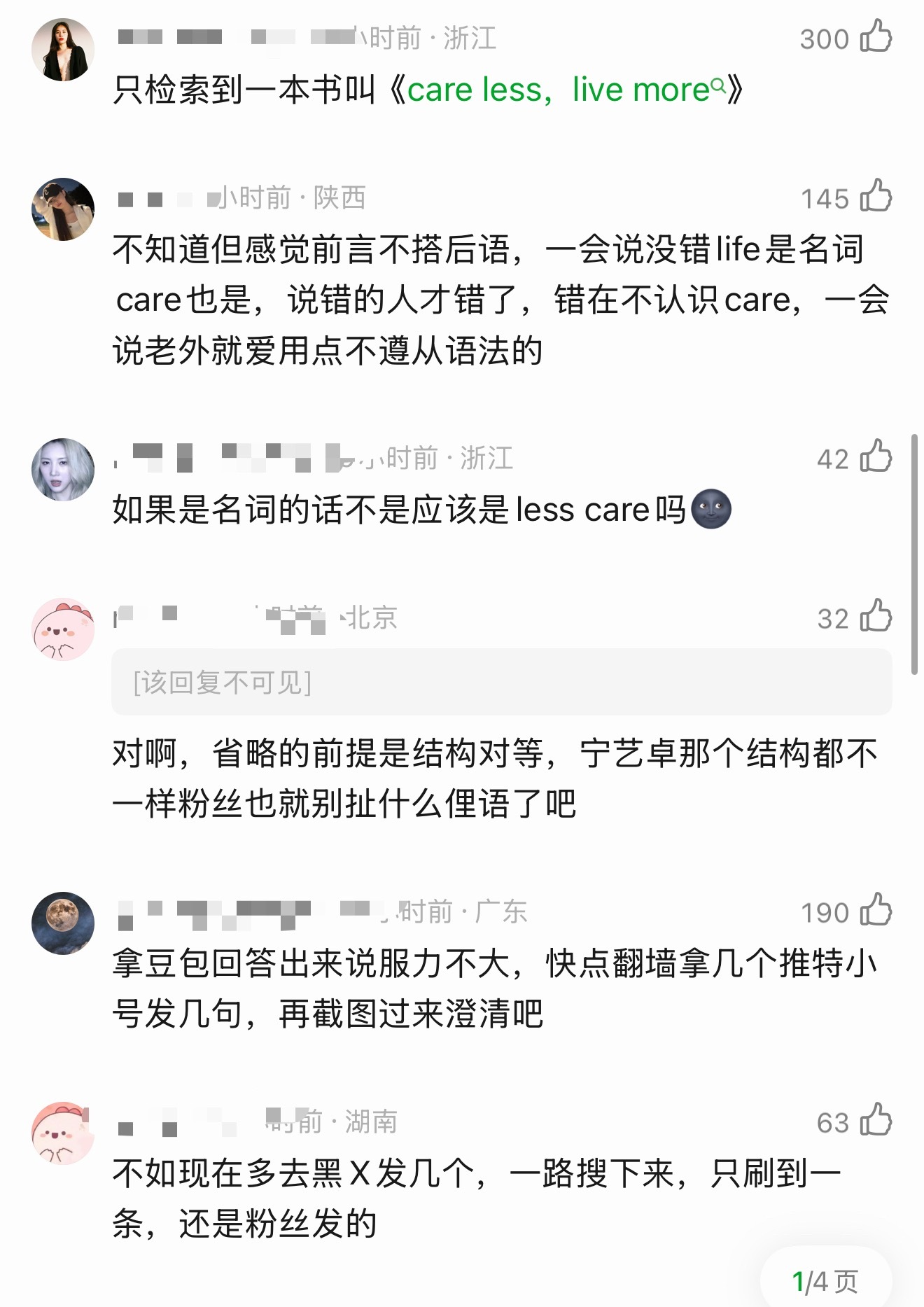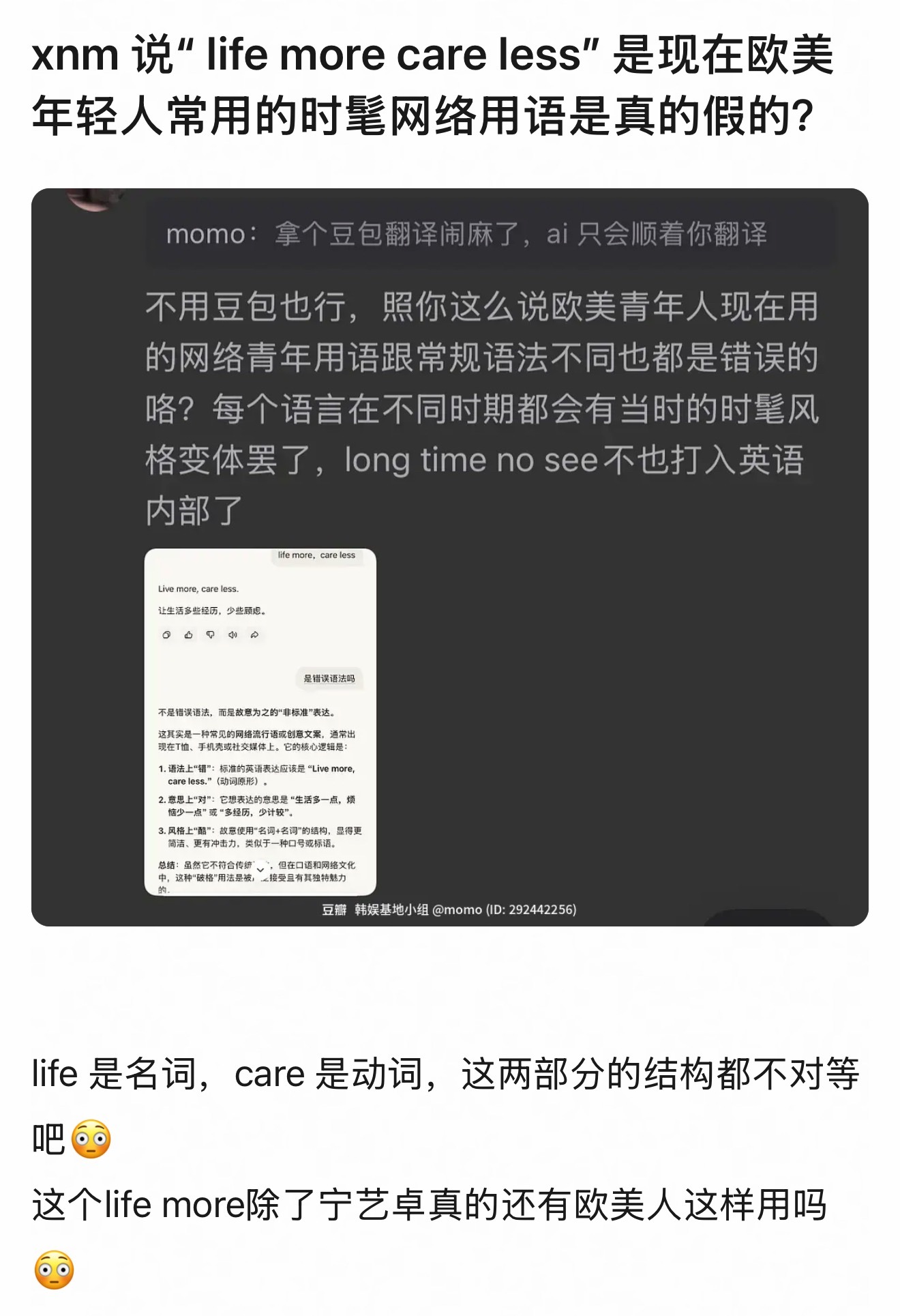 宁艺卓疑似回应争议:“life more care less”英语用法错误引热议